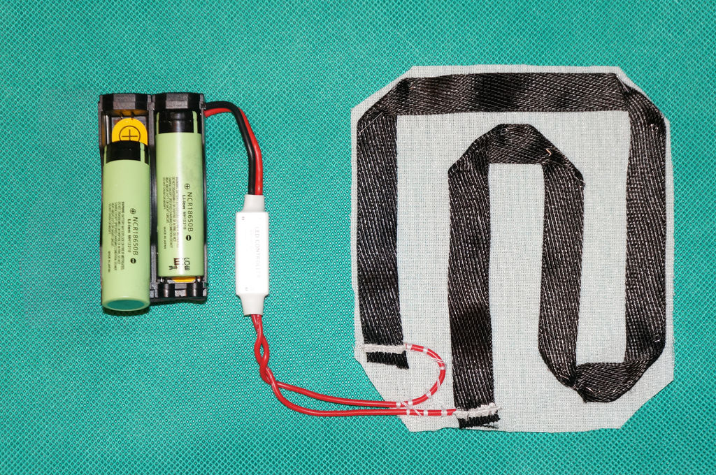 In theory, this should be pretty safe. There’s fairly low voltage here and the heater was intended to be worn inside clothing.