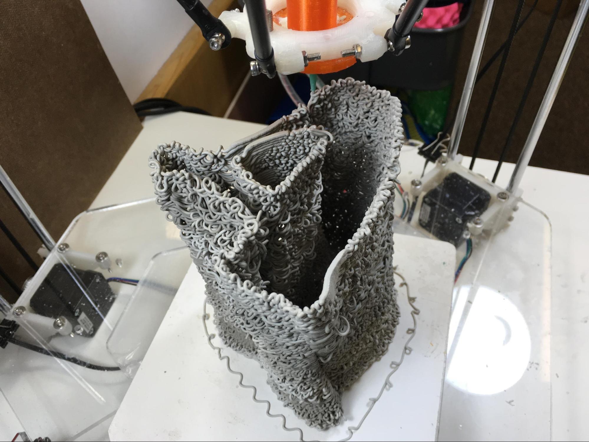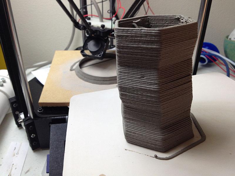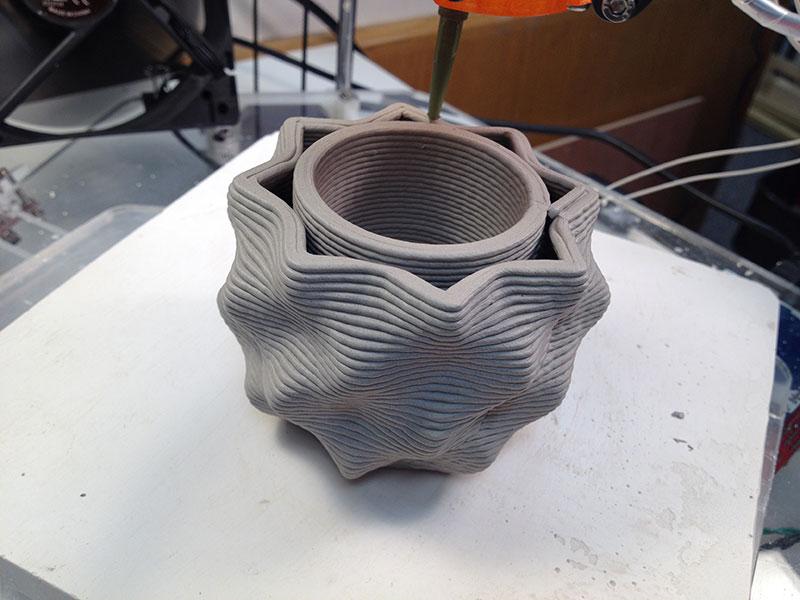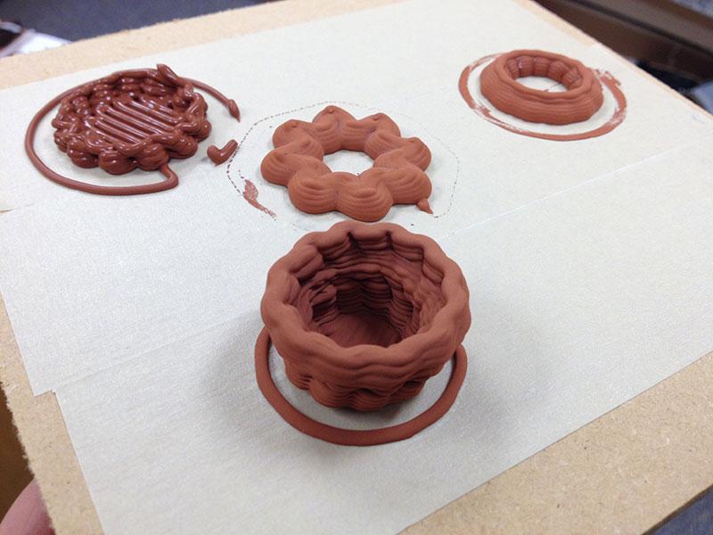 Since I can reuse unfired clay, I have reclaimed most of my misprints. However, I appreciate the collapsed prints and misprints since they leave some commentary on the promise of digital fabrication. My artist friends love the collapsed or dropped prints. So, I do not reclaim some interesting misprints and sometimes I print something and drop it to make something totally new – I call it collaboration with gravity.