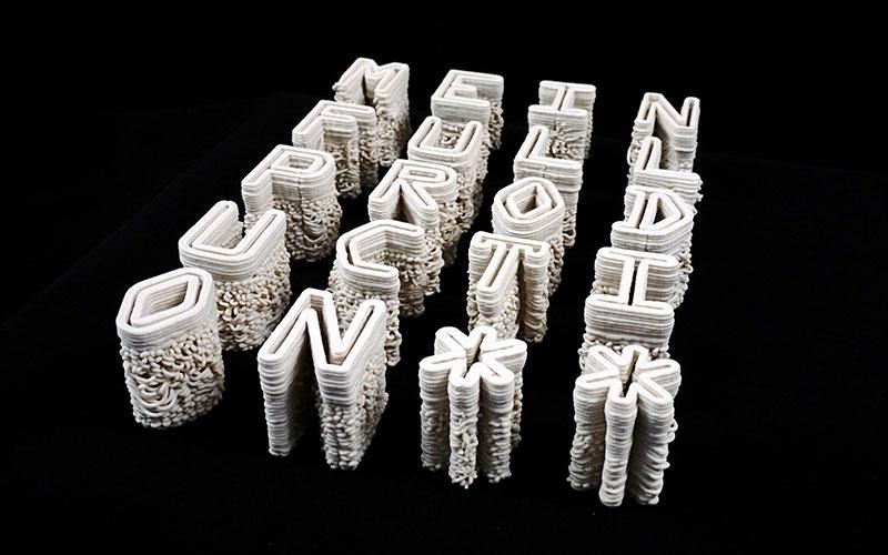 My research explores unconventional methods of creating three-dimensional type with materials and techniques unique to type design — such as ceramics and desktop 3D printing. This research reflects on the development of the digital fabrication and the unconventional typographic practices in the new digital age. I have made three-dimensional ceramic type as a series of typographic explorations to challenge and seek a new way to create tangible type in three-dimensional space.