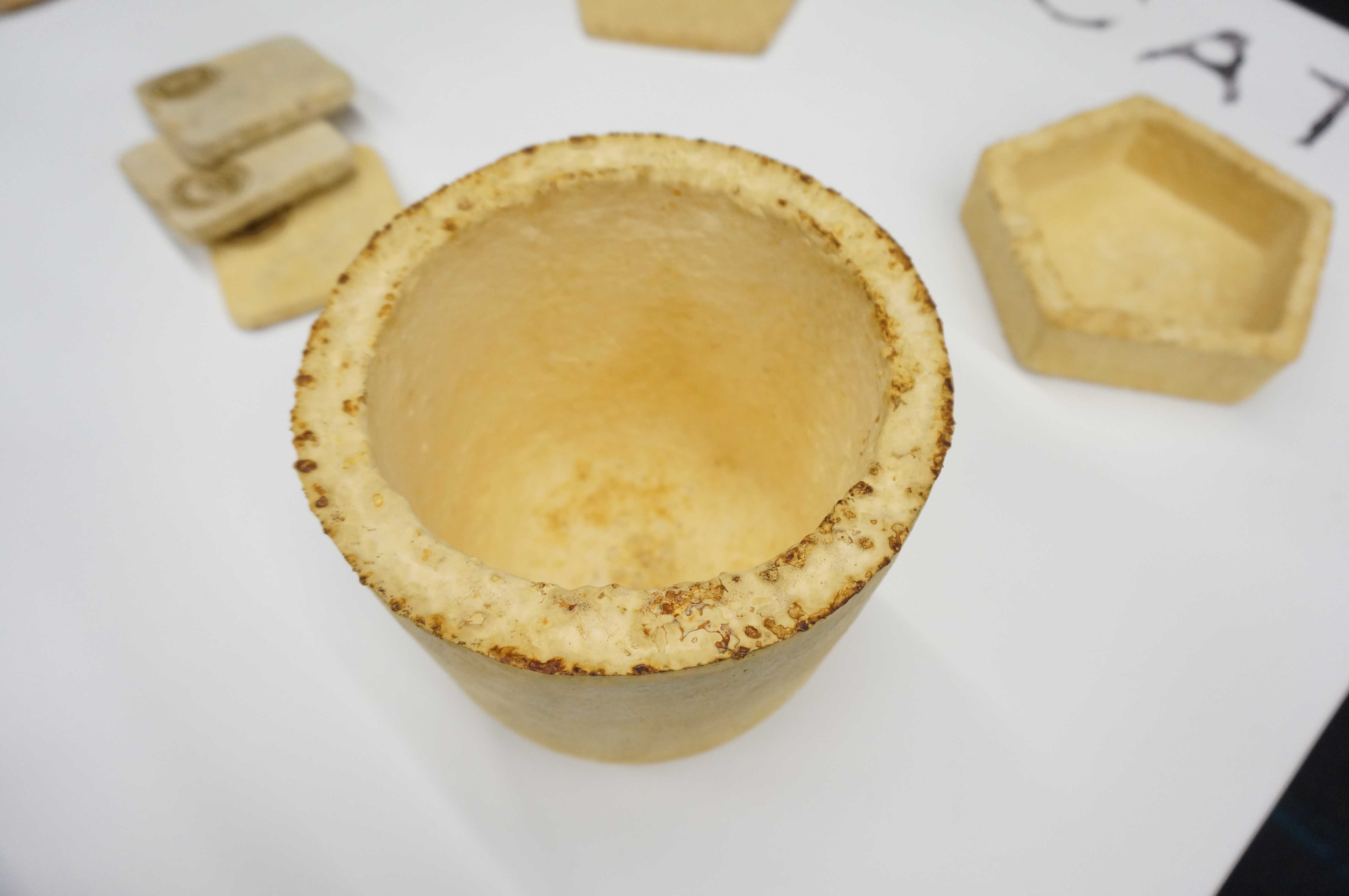 While ‘Mycelium Design’ is an on-going, long-term research-project, initiated by Officina Corpuscoli, together with partners such as Utrecht Universiteit and Mediamatic. The project seeks to study and analyse the mechanisms underlying structural and decorative properties of the mycelium as well as their improvement, while exploring and assessing natural variations, environmental growth conditions and genetic qualities of the selected mycelia, aiming to identify tailor-made mycelia for use as building blocks or as both structural and decorative material.