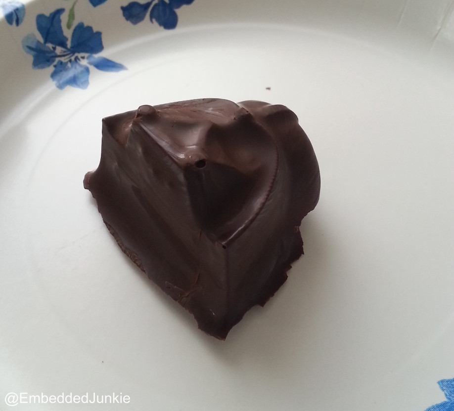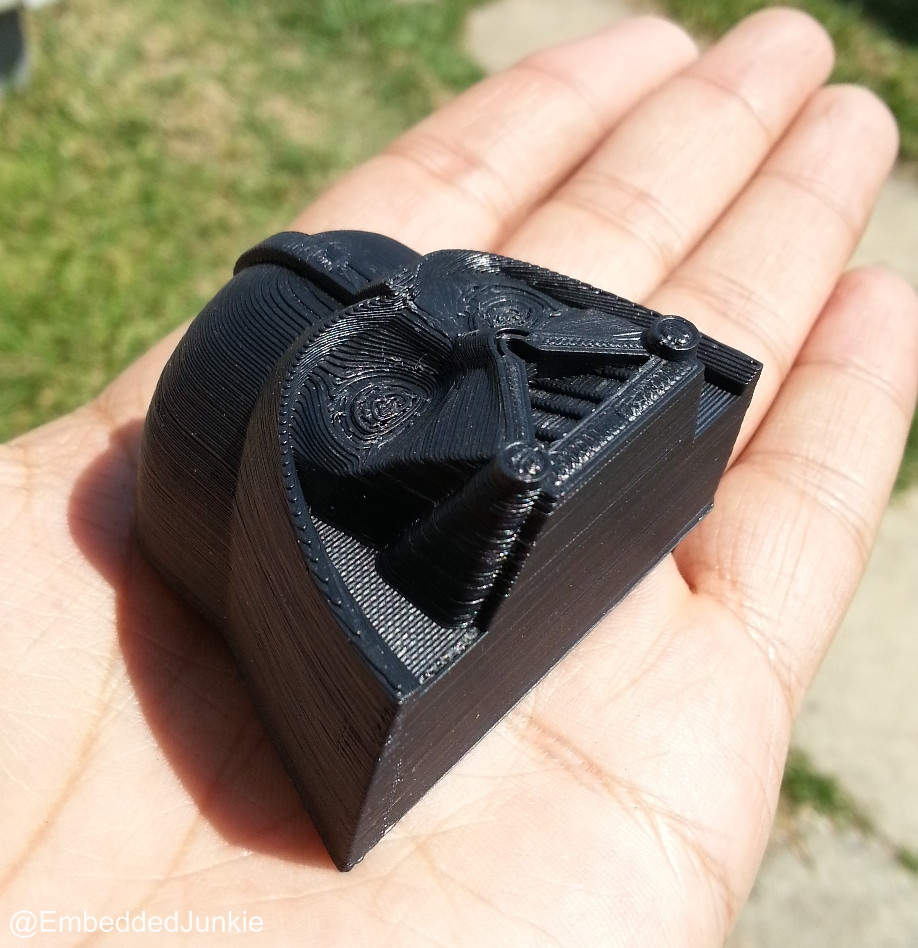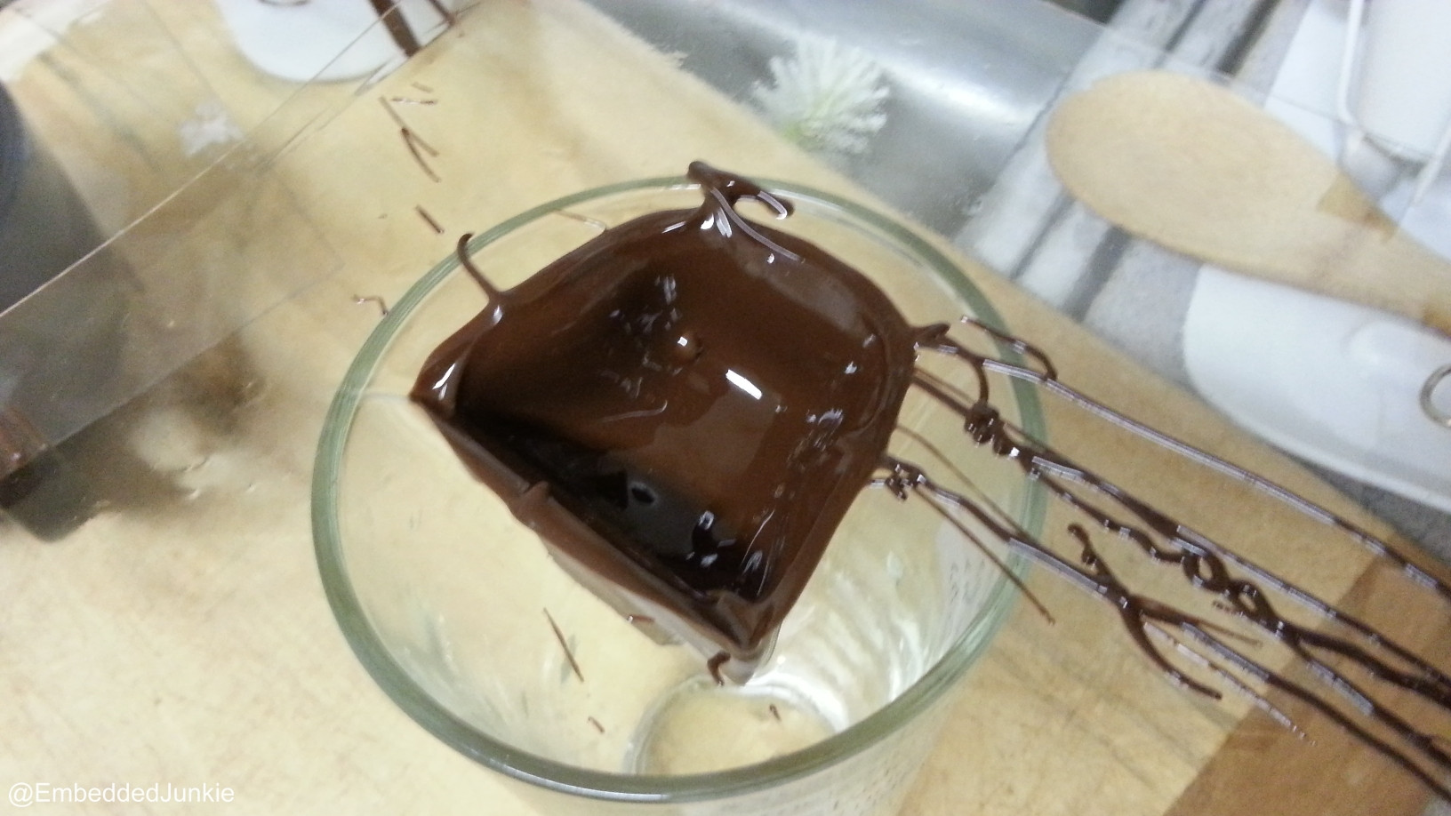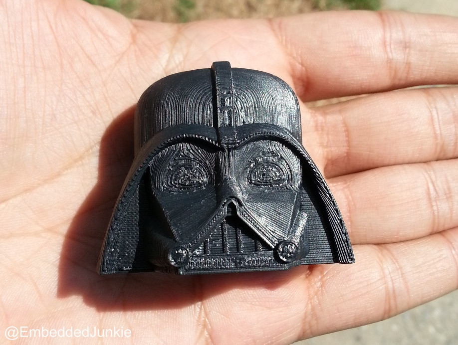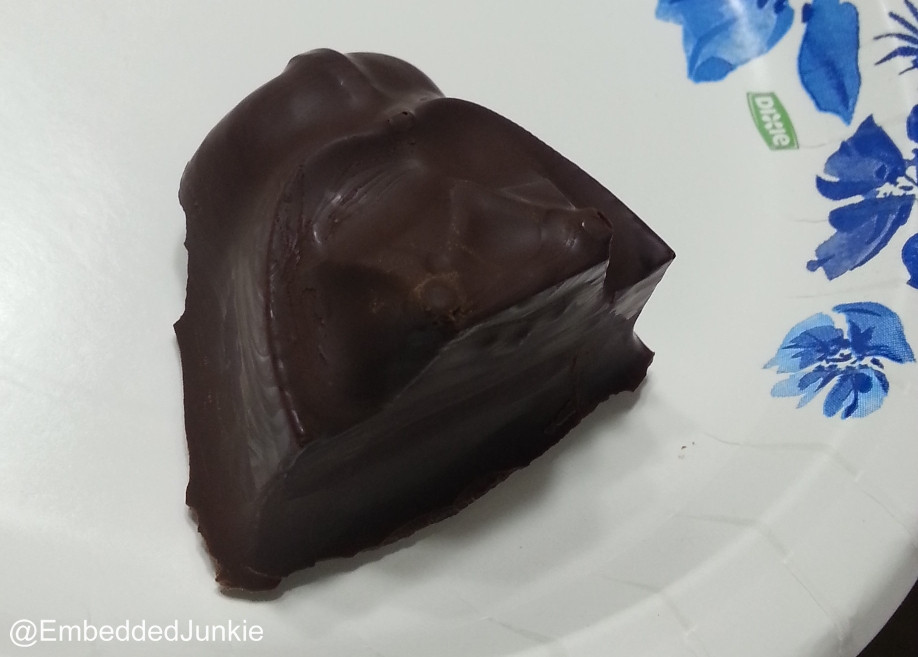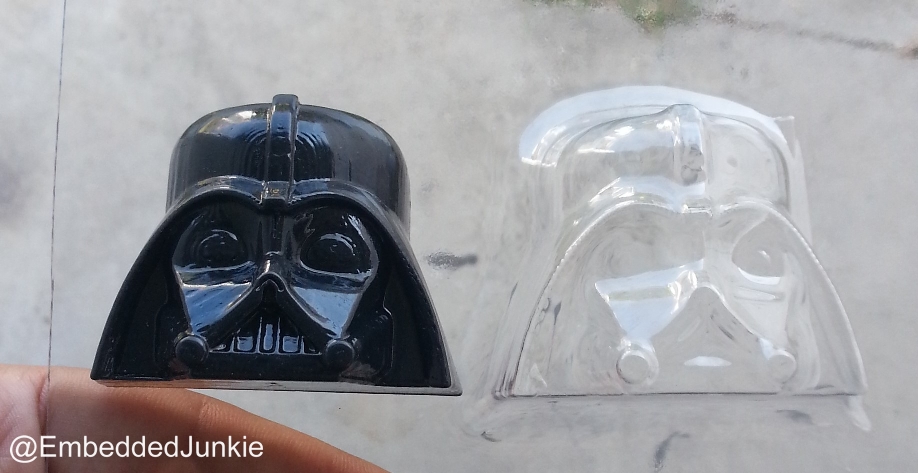 Juan Gutierrez does all kinds of 3D printing art, vacuum forming, and various interesting home manufacturing projects. His latest endeavor was quite tasty looking. He combined 3D printing and Vacuum forming to create a dark chocolate Darth Vader mask. He started with a 3d print, vacuum formed that to make a chocolate mold, then poured some yummy dark chocolate. His end result looks quite appealing.