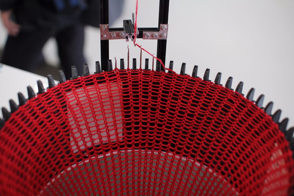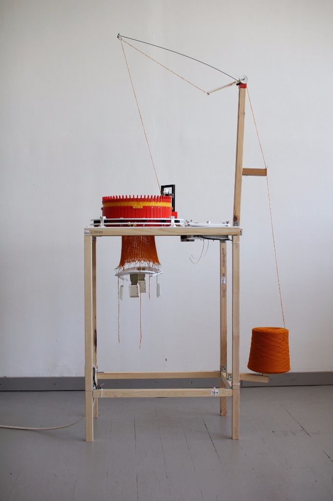 Guljajeva and Canet have been creating art together since 2009, and they first started working with knitting machines in 2012 when they began work on their first: the Knitic. After finishing this project, they decided to take it to the next level and came up with the Circular Knitic.