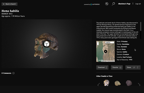 Aware of the general inaccessibility of these national treasures in their current locations, Dr. Louise Leakey, a third generation of the ‘fossil hunter’ family, took it upon herself to find a way to make them globally accessible for educators, kids, and science enthusiasts. Inspired by the possibilities presented by new capture and digitization technologies, about two years ago Dr. Louise Leakey began a fruitful collaboration with Autodesk. Other key collaborators on this project include: National Geographic, Stony Brook University and the museums and institutes mentioned above.