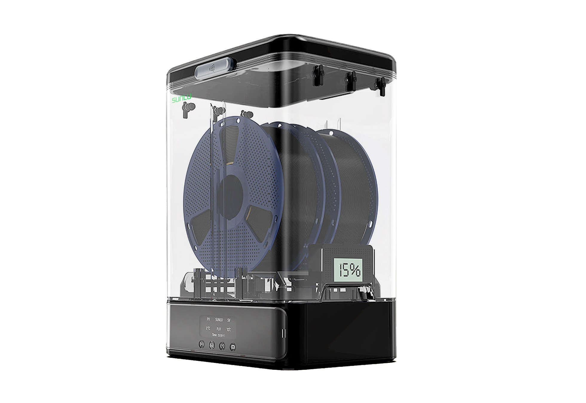 With most other filament dryers, the fun ends there. When you want to store the filament or switch to others, you must remove them from the dryer. With the SP2, the storage box can be removed and covers can be placed on, sealing the box from air and moisture. Another box can then be placed onto the dryer base, and another drying job can be run. If you have a bunch of spools you want to keep dry, you don’t need to keep buying the expensive electronics over and over, you just buy new storage cases — brilliant. Each case also comes with a built-in hygrometer so you can easily make sure you are keeping it at a proper moisture level.