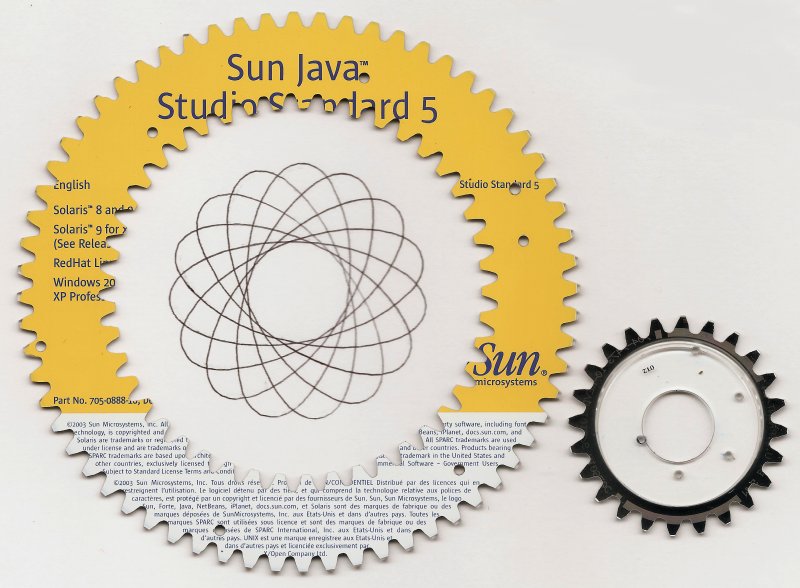I had the very great pleasure of meeting Ari Krupnik at the recent Bay Area Maker Faire. Among other cool toys, Ari was showing off his “RecycloGraph,” which is a two-piece Spirograph (Wikipedia) milled from an old CD on Ari’s ShopBot. Once he’s milled the profile, Ari turns the plastic over and etches words or graphics in the metal foil using a CNC laser. Ari’s selling them now using a “name your price” PayPal widget on his website.