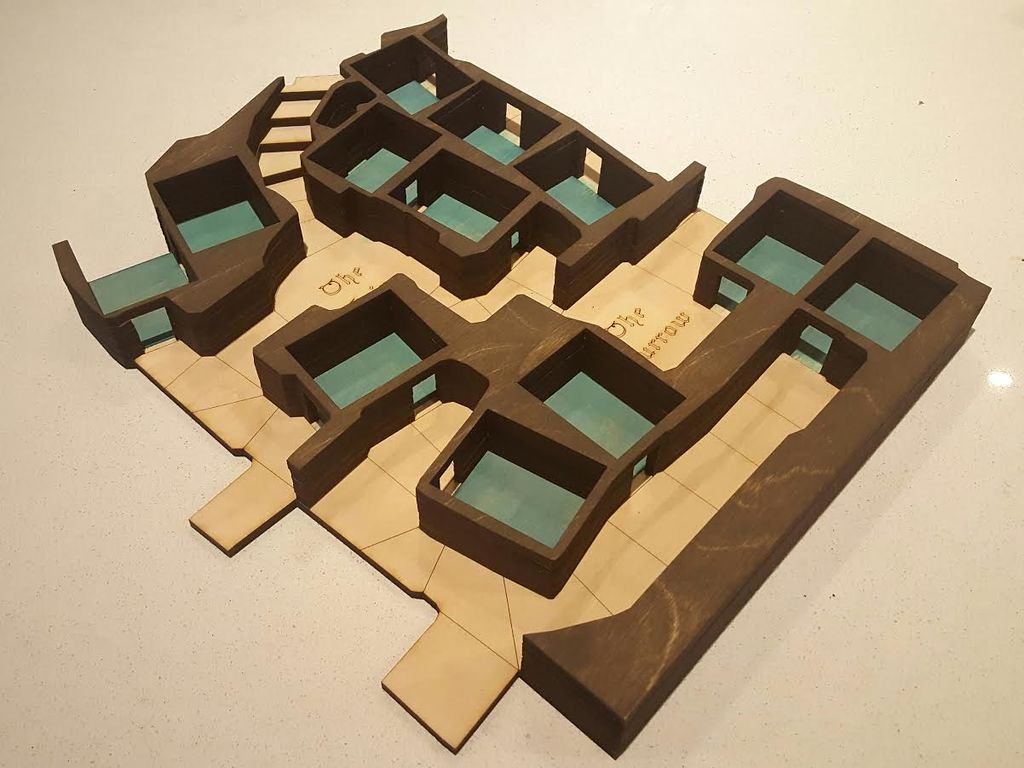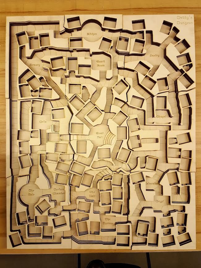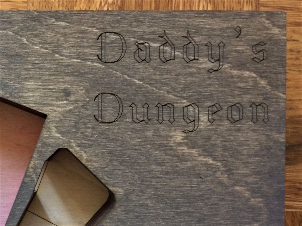 He then stained the top of the dungeons to go along with the burned surfaces of the walls, and finally glued them to the floor piece. After months of work, Campbell and his kids will finally have a game where they can place various cards inside of the dungeon, and he suspects it “will enhance the game play tremendously.”