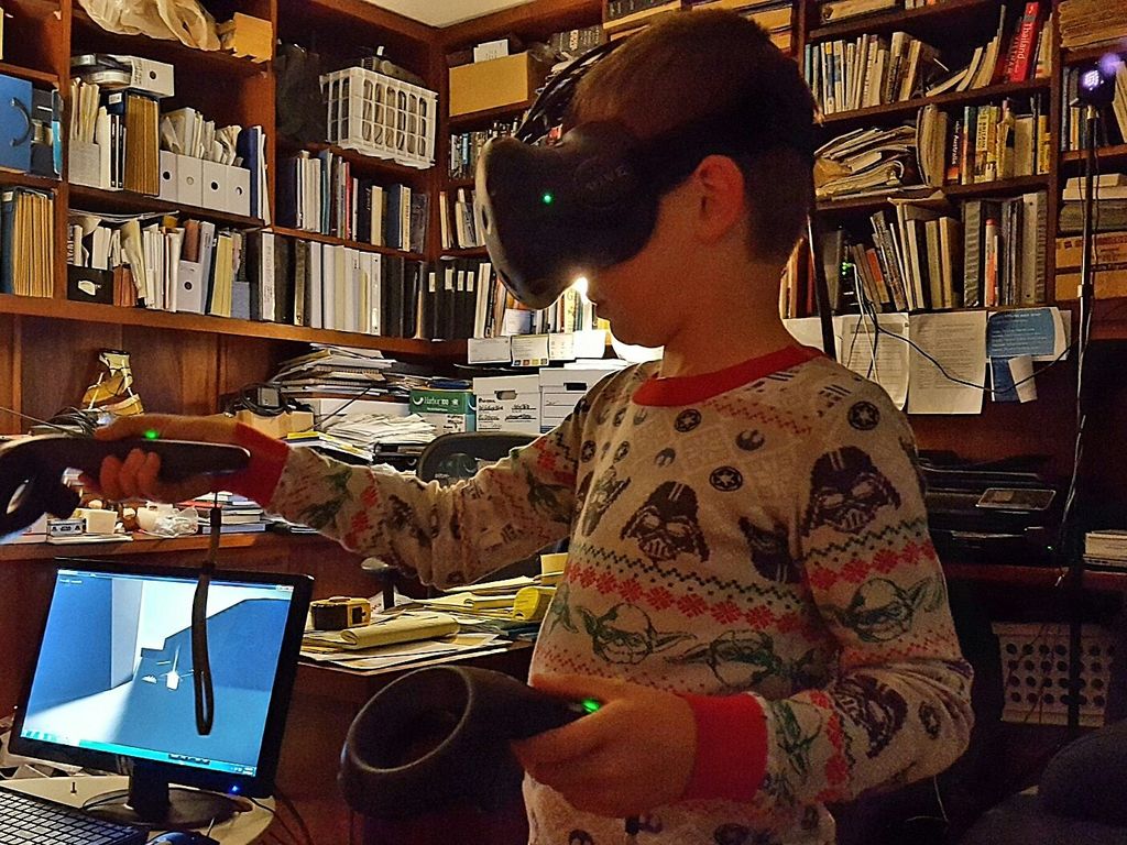 Nothing compares to experiencing architectural design at full scale, in real time, in VR – such a fantastic tool for studying, critiquing, and communicating design intent! And in this case, it proved an ideal tool for walking around and performing quality control of the model – less about critiquing the design (which was more-or-less locked in due to the original game board graphics) and more about “Is everything modeled correctly? Have I missed any doors or stairs? Etc.” Plus, my kids thought it was pretty cool being able to experience a space that was meaningful to them, having played the 2D board game already.