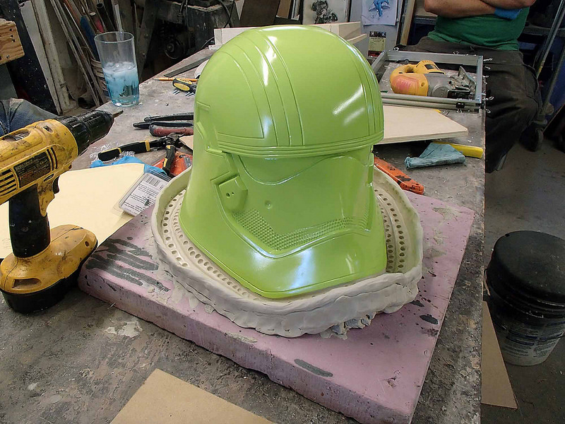 The upside to doing all of the work upfront for a custom helmet mold is that helmets can then be made as needed. As shown in the gallery, he made at least five of these helmets and painted them with a glossy black base coat. This allowed him to try out several types of chrome paint, and he settled on one called “Mirror Chrome.” Finally, after some finishing touches, including some nice “weathering” work, the helmet was ready to be proudly worn!