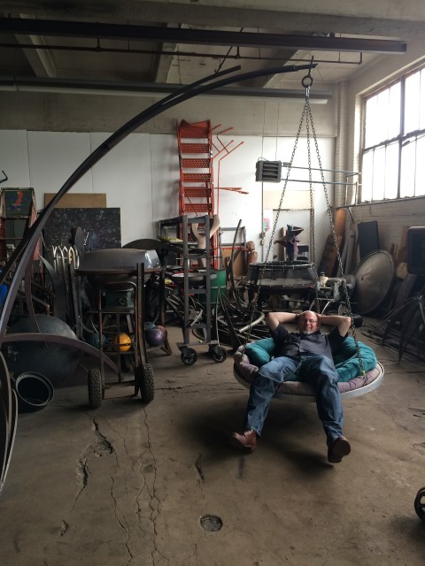 Jason Babler and I took a trip to Tony’s studio and absolutely loved what we saw. Tony seems to work with pretty much everything, though the majority of things we saw around the studio were made of metal. Some sculptures were static, some moving, some interactive.