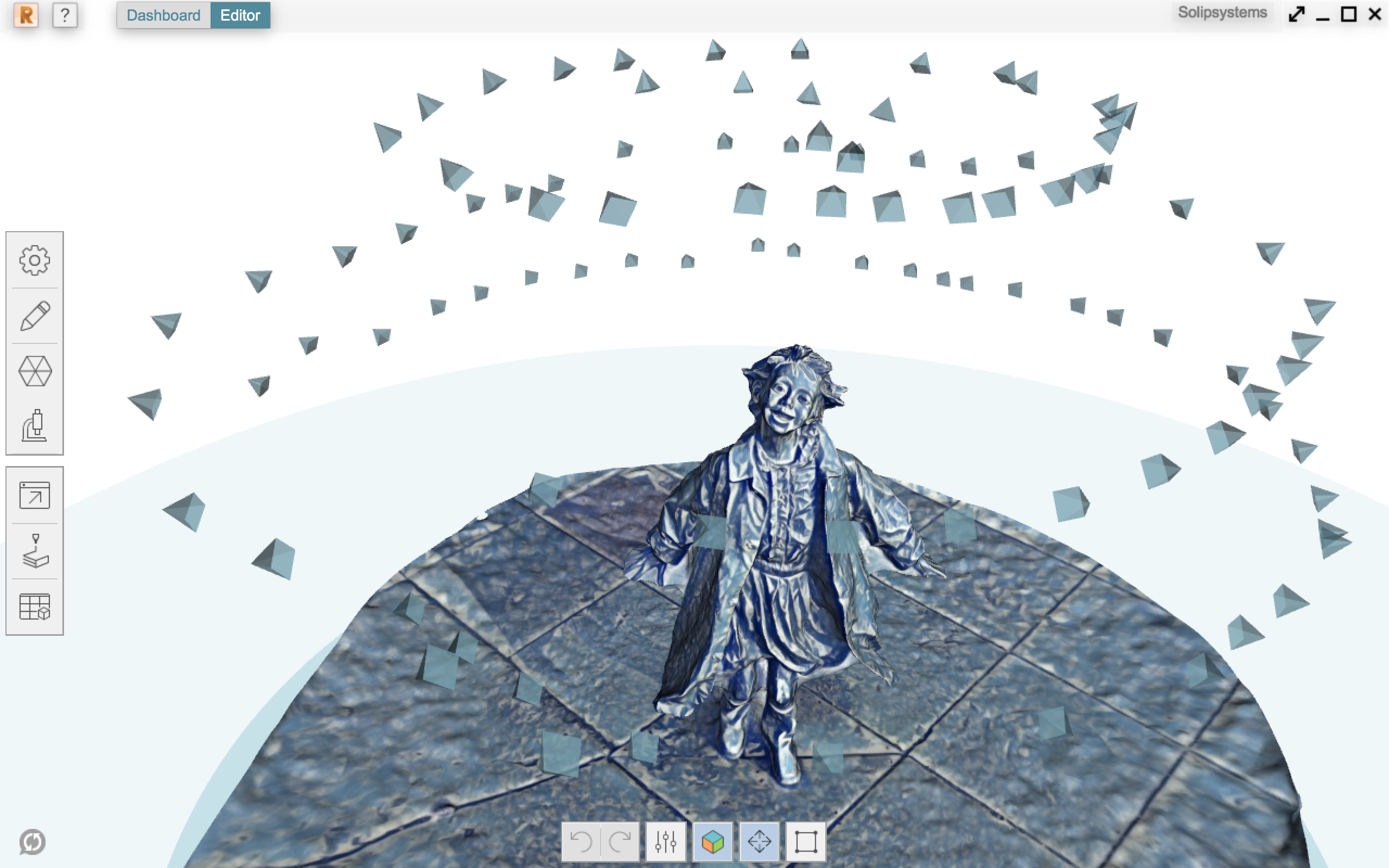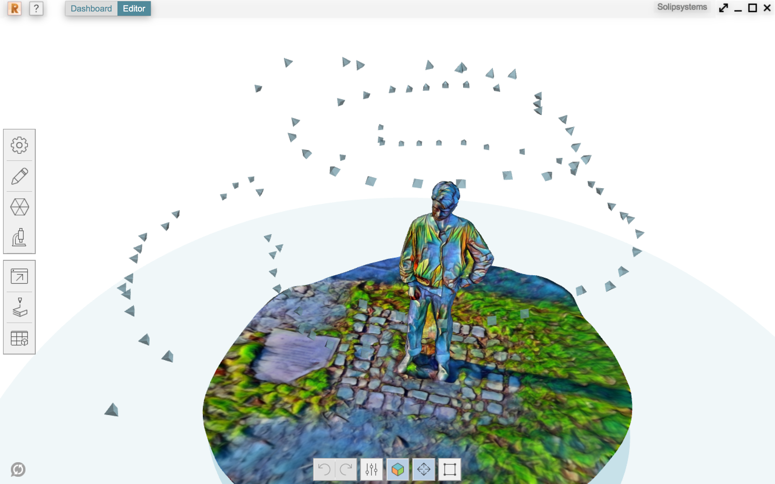 In these images, you can see the points where all the photographs that comprise these photograms were taken. Those three platonically ideal rotations around your object generally give way to something a little more scattered looking. That’s OK.