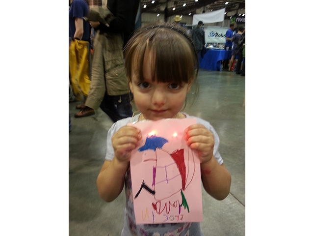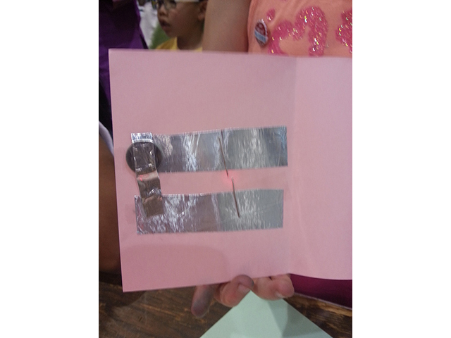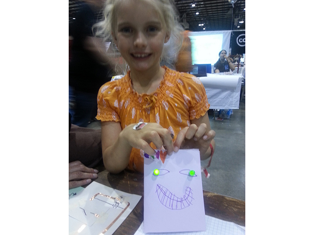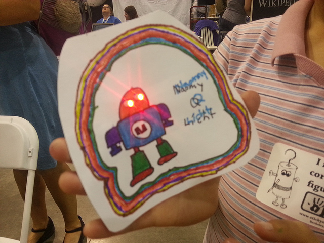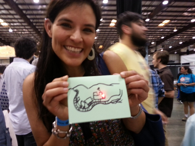 Chris brought this project to Maker Faire Bay Area this year, and it was a a big hit. Above are some of the fun TapeTricity cards that Fairegoers made.