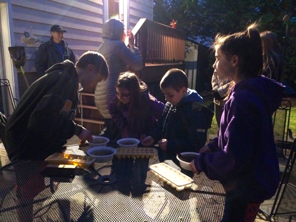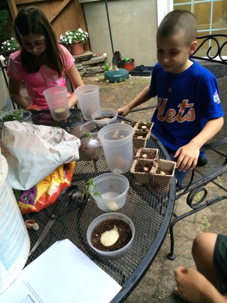 Our 4H Nature’s Keepers group meets monthly and learns about taking care of the environment, exploring and experiencing it firsthand! Our friends, Lynee and Dan Dokus are the leaders and always have prepared an interesting project or experiment to try out. In our June meeting, we prepared kitchen compost scraps (onion bottoms, garlic cloves, potato slices, parsley and basil cuttings and mushroom stems) and placed them in water or soil in order to see if we could start new plants. The kids were amazed when the scraps took root and suddenly we had a container garden community on the front stairs!