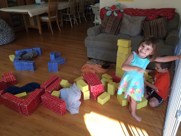 We attempted a few of the projects on the Maker Camp website such as the “spudmarine”, drinking straw oboe, DIY slime and plastic plate UFO! The pre-K kids tend to gravitate to their own building toys, blocks and boxes and if I leave them alone and just observe, they find all sorts of interesting uses for the toys — they sat in boxes and wrapped themselves in bubble wrap one day to pretend they were in hot tubs!