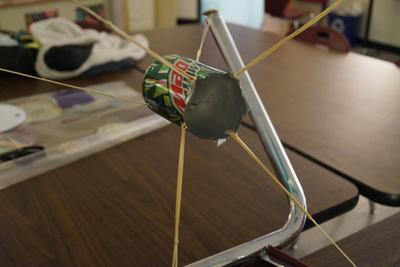 My students also had an opportunity to learn about powering through frustration to finish a task. It’s all too common for my students to shut down and give up when things get difficult, but I watched as they thought on their feet and solved problems to make the slingshot work. One of my students was frustrated at the lack of accuracy of the slingshot, so he set off to improve on the design. We only had one plastic cup to work with, so he grabbed a soda can left behind by another student and went to work. He ended up making an impressive slingshot that became the showcase of the day.