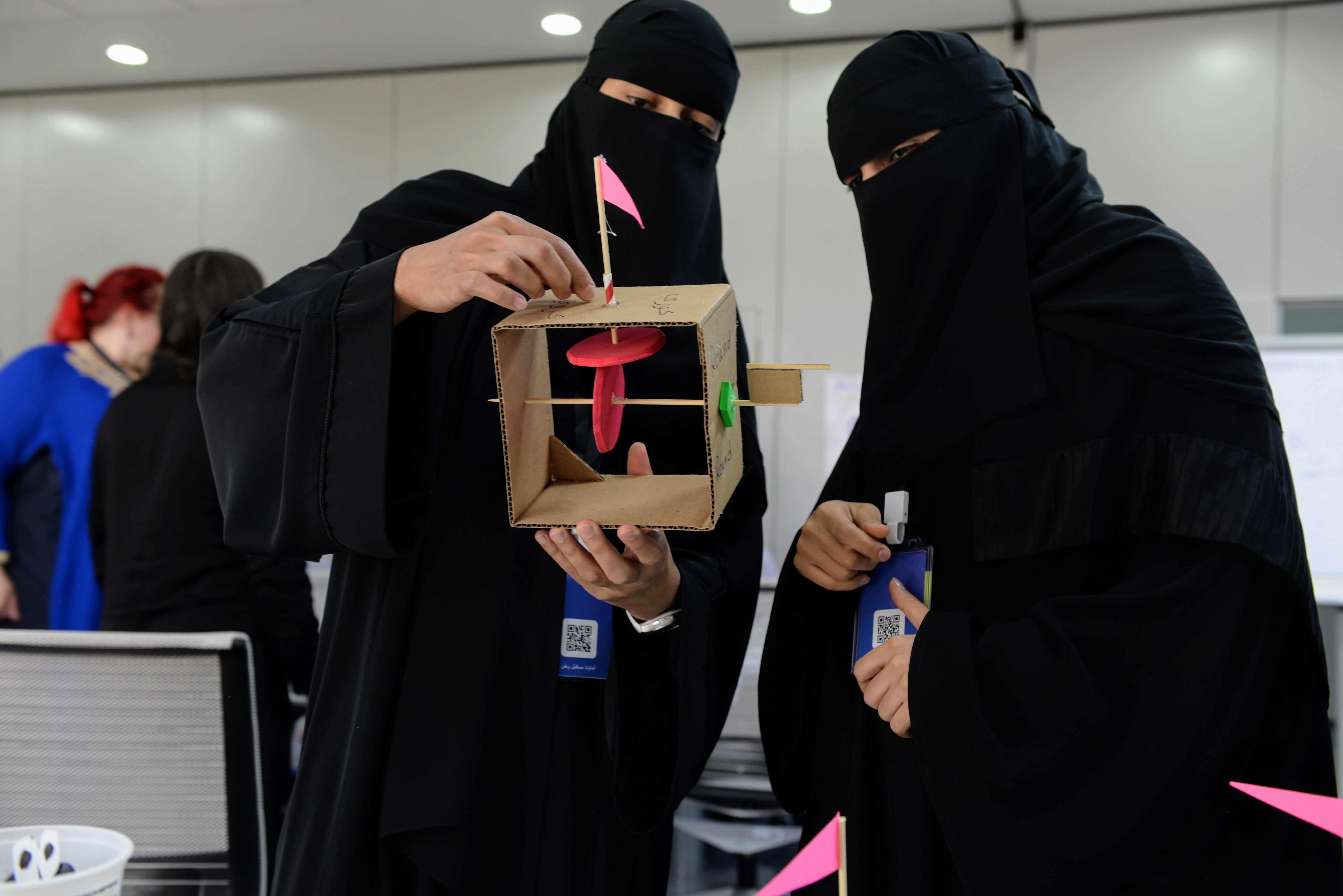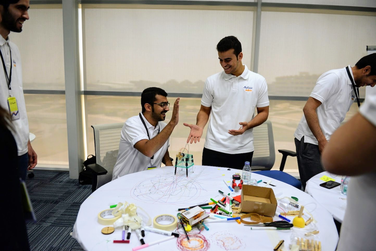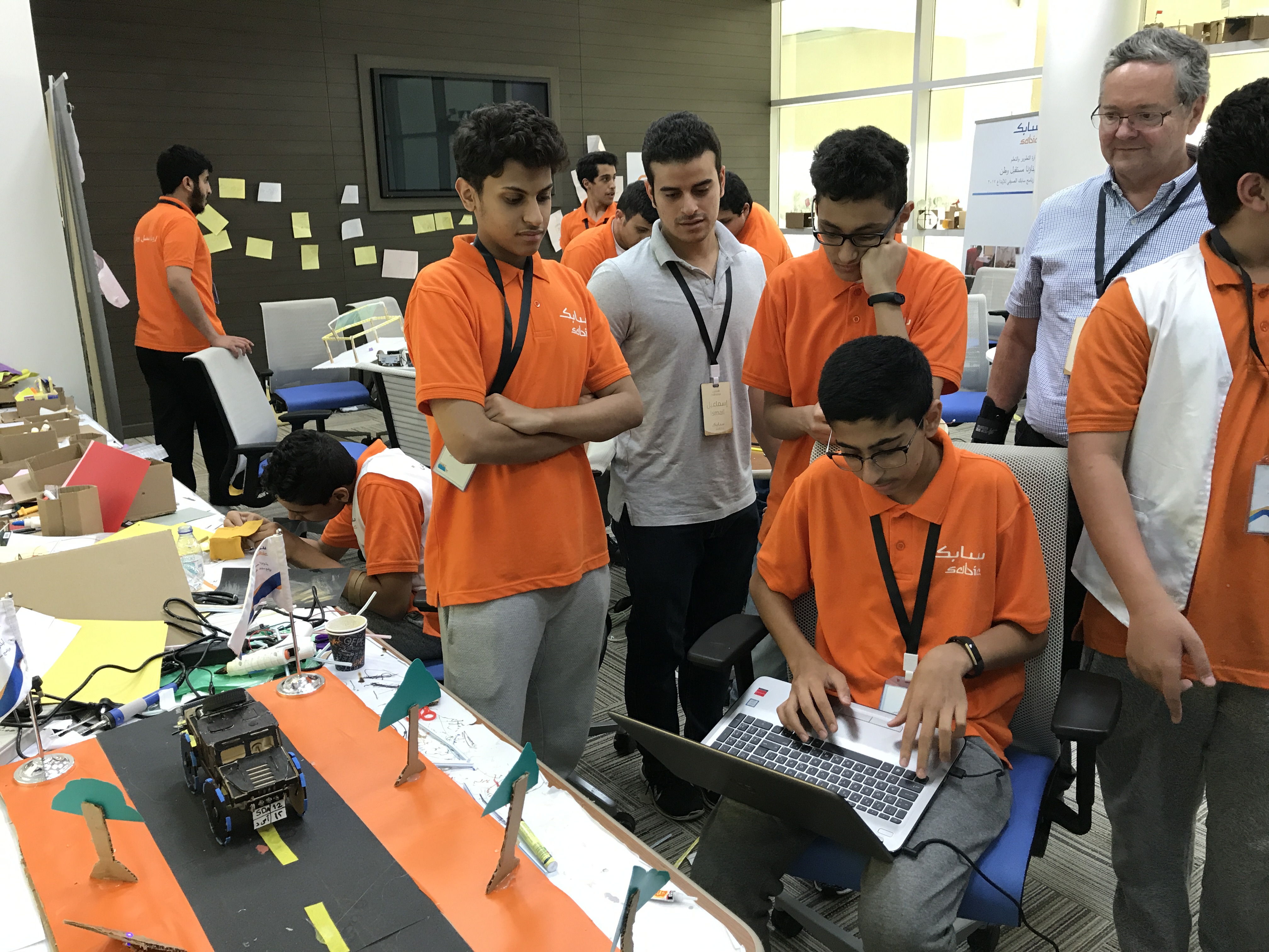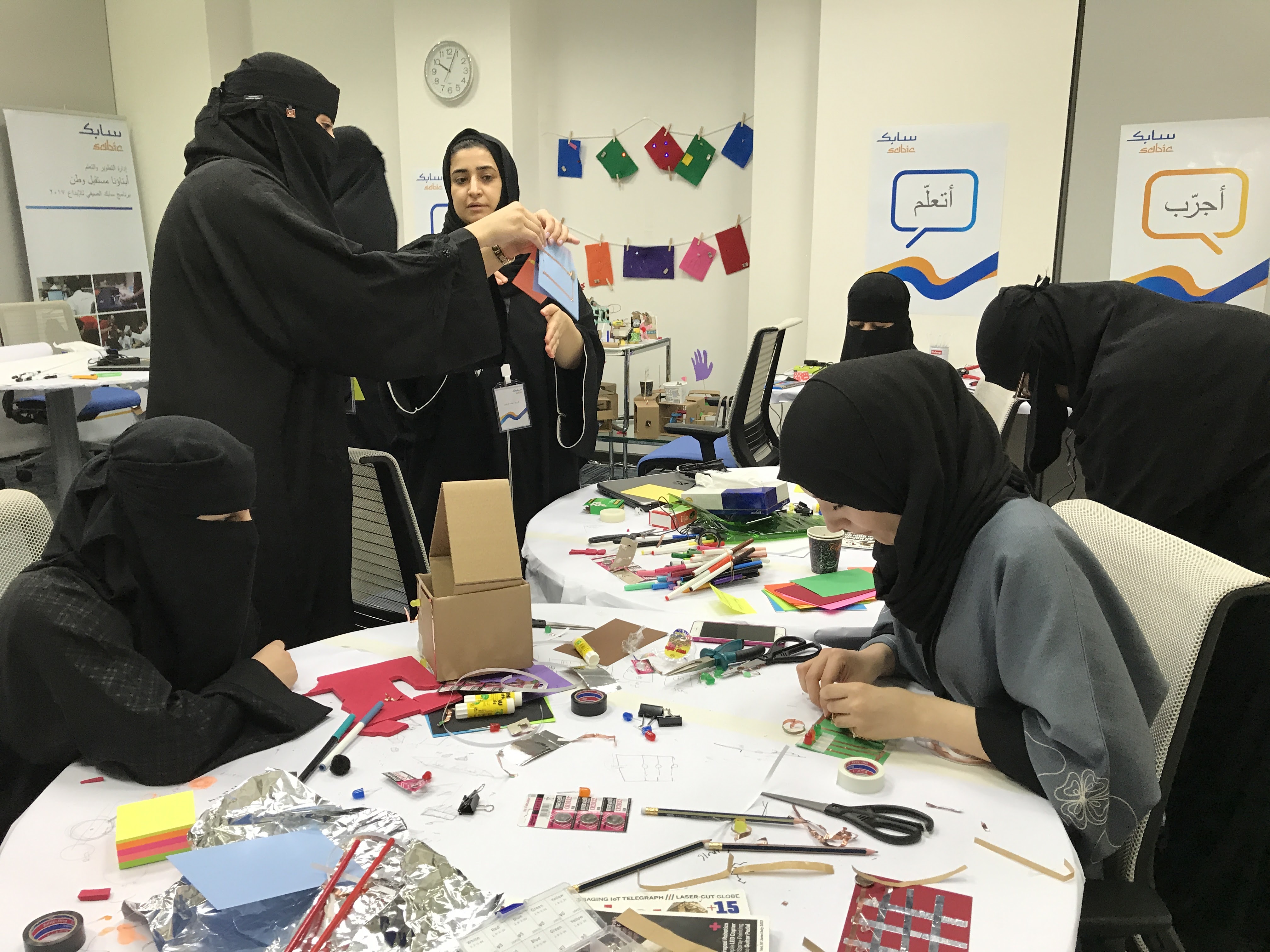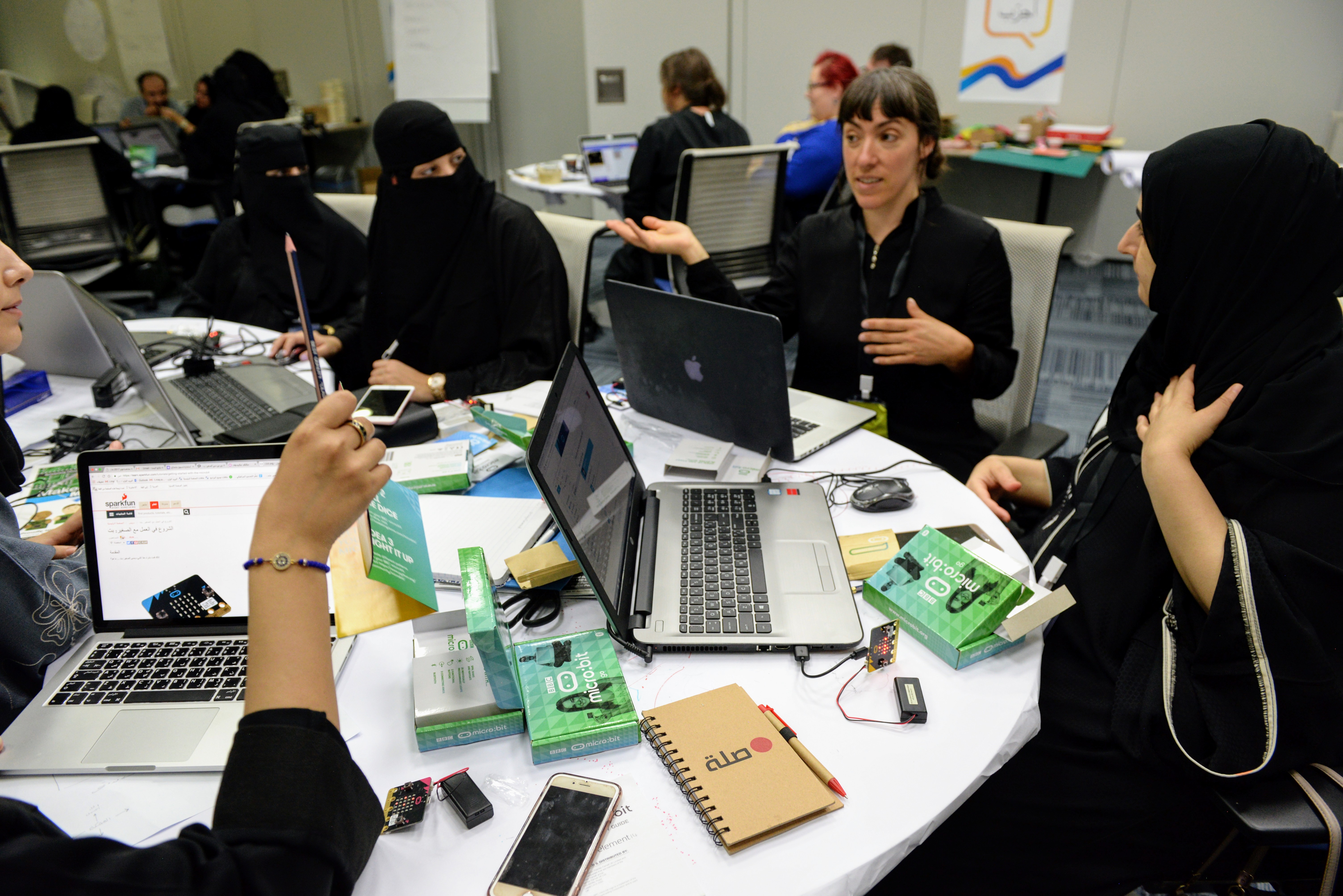 The day after arriving in Riyadh, our team took a couple of taxi cabs to SABIC Academy, the company compound and training facility that would be our home for the duration of the program, and we met the local facilitators. They were fifteen young men and women who were hired by TalentS to lead the sessions and mentor the students. We started by going around the circle and introducing ourselves. Right away, I was impressed by their wide range of interests and expertise. Most of the male students had been trained as engineers and many of them were interested in alternative ways of teaching young people about science and technology. The female facilitators included coders, professors, teachers, and two sisters who operated a women-only makerspace in Riyadh.