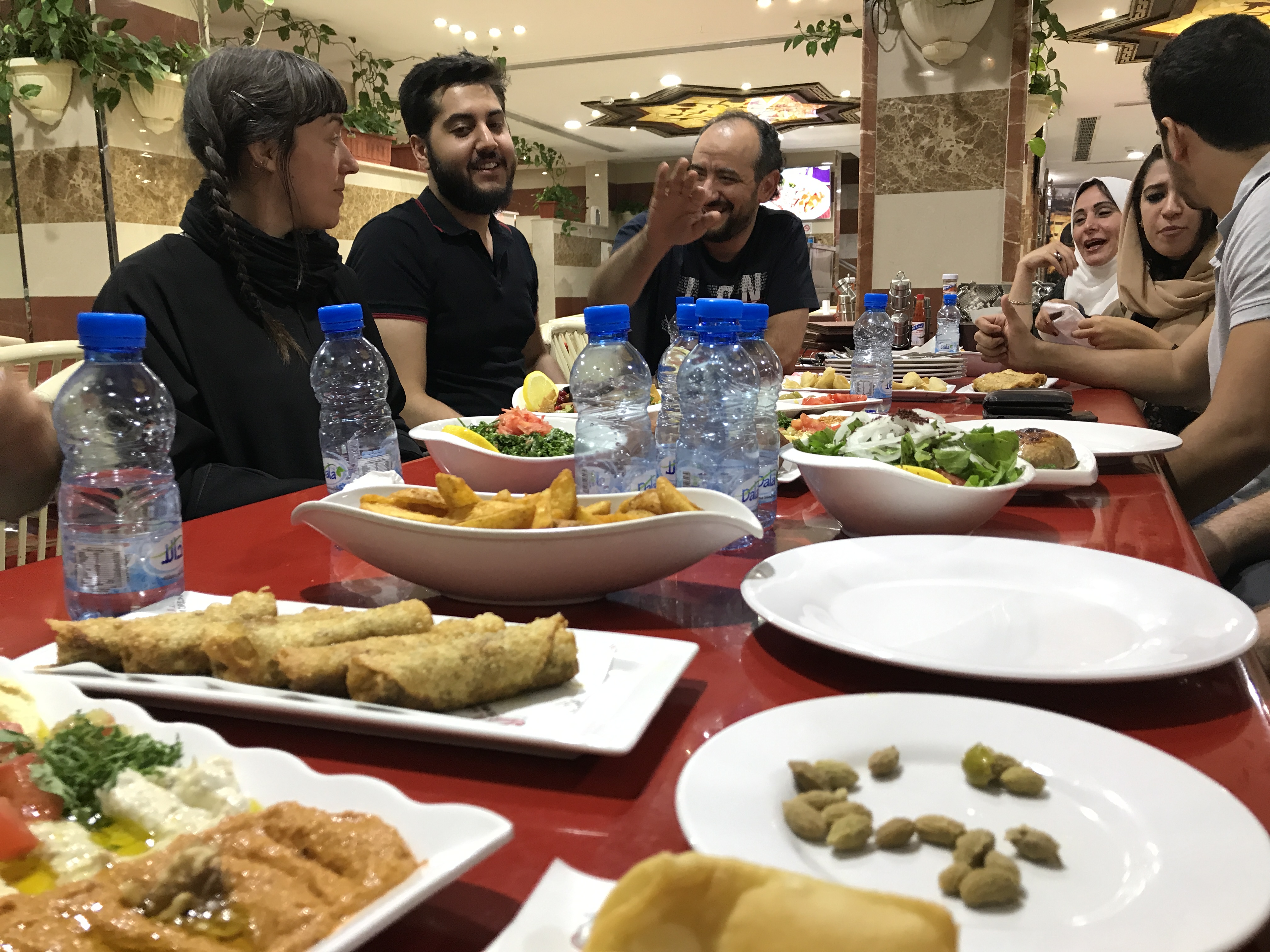 We were exhausted after the first week of the program, but we still wanted to explore Riyadh. We visited the national museum, with a tour of the history of the Arabian Gulf, the foundation of Islam and an overview of the modern Saudi state. We explored the palace of that the first king of modern Saudi Arabia built in the 1930s, still filled with his opulent possessions. Our tour also included a trip to the old and slightly touristy section of the city called Dirayah, where we rode golf carts around the old walls, past families sipping coffee and taking advantage of the slightly cooler (though still pushing 100 degree) evening weather in this valley. We had dinner at a traditional restaurant called Najd Village, where we sat on the floor and passed around endless plates of delicious flatbread, chicken and rice, lamb stews, and tiny cups of strong cardamon flavored Arabic coffee.