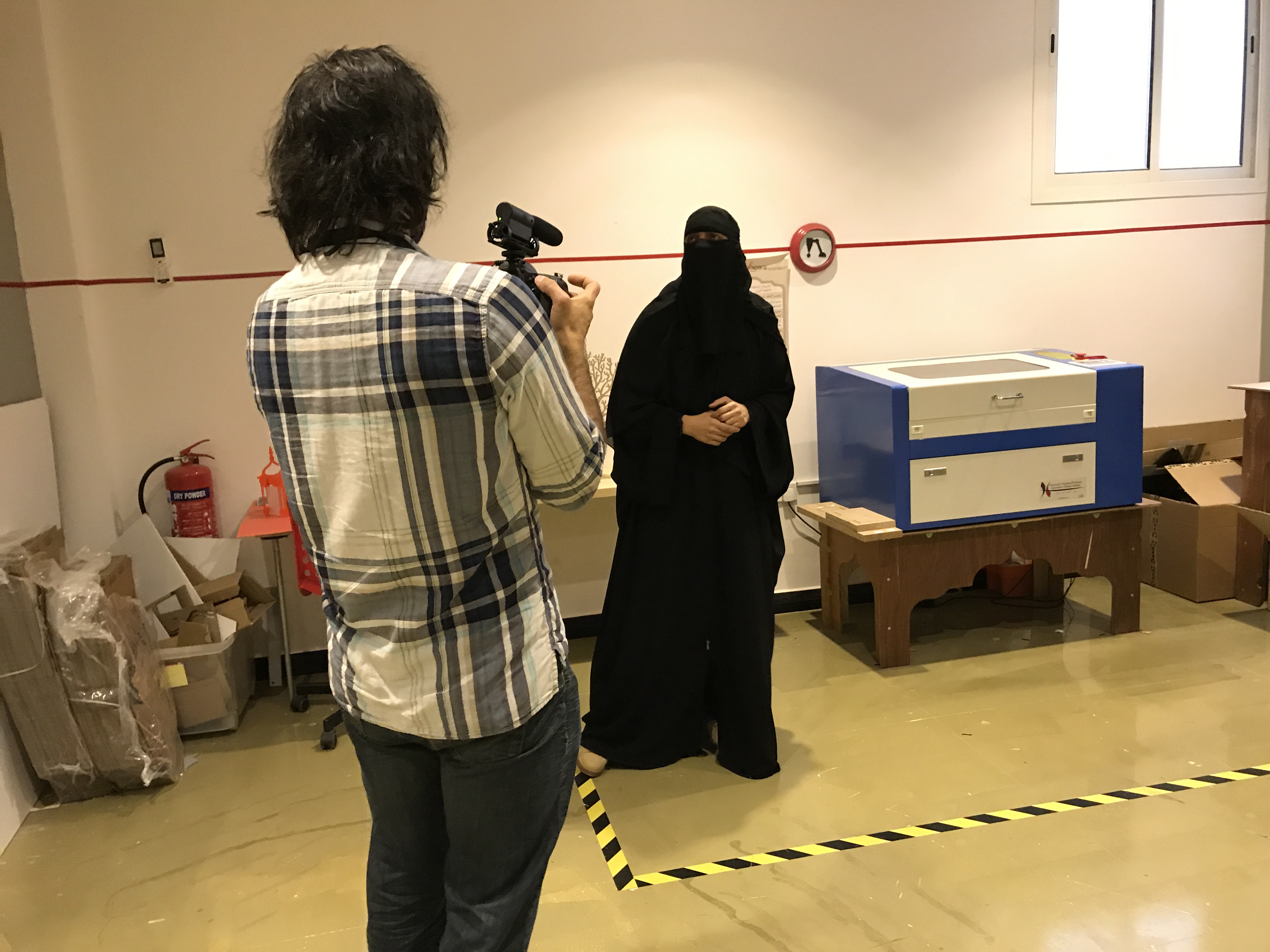 Sarah explained that they were trying something new in the city, and experimenting with the format. She said, “We started with a membership business model, but that didn’t work, because making and makerspaces are still new. We changed that, we accepted anyone who just walked in, we receive orders to make things, we work with whatever works for people.” This flexibility and focus on the needs of the members was evident from the moment we entered the space, and we could see how hard they had worked to develop a comfortable space. The all-female nature of the space allows women makers to work without the flowing black abayas that are compulsory in mixed-gender environments. This visit was eye-opening, challenging our assumptions and revealing some of the contradictions and complications around making in Saudi Arabia.