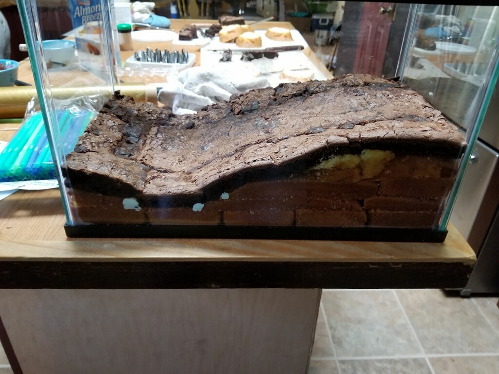 I would plan more time to do a cake like this again. I might would include a pumping well to show how drawdown in an aquifer could effect water levels in nearby wells. Or I could include a stream and try to show how streams and groundwater are interconnected.