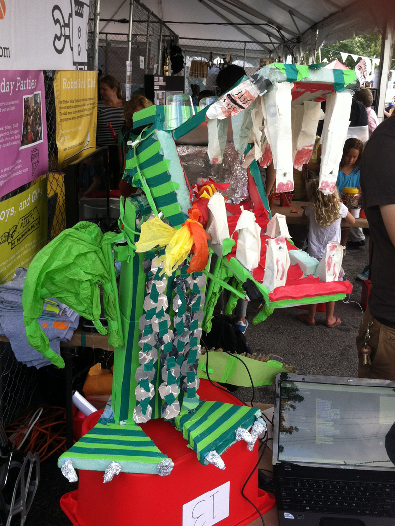 Stop by and check out some of the wonderful robotic creations conjured up by Brooklyn Robot Factory’s fledgling engineers, including this adorable hugging robot at the Young Makers tent in Zone C!