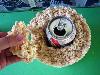 Apparently rice krispies treats are actually an effective form of insulation, so the folks over at My Science Project carried that research to its logical conclusion with this ingenious Rice Krispies Treat Beer Cozy project.