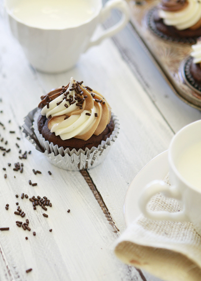 The two-tone frosting on these gorgeous nutella cupcakes here on Craft really makes them look especially delicious.