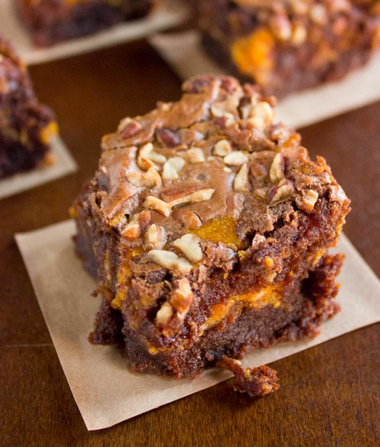 Rather than struggle against the vortex of pumpkin-flavored-everything that our universe gets sucked into every year at this time, why not reward yourself for bravely accepting it with these Pumpkin Nutella Brownies from Brown Sugar.