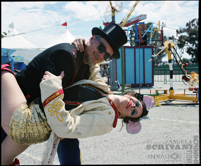 Mark Perez, Rose Harden and the team behind the Life Size Mousetrap have taken a childhood game and turned it into a sideshow spectacle that any carny would be proud to be a part of. The structure itself is an impressive Rube Goldberg style machine, wrought large. Take a marble from the kid’s game, and turn it into a bowling ball. Now expand everything else to scale, and you’ll have some idea what I’m talking about. The bathtub is a real bathtub. The diver is the size of a person. The machine spreads over a 60×100 foot area, and weighs on the order to 50,000 lbs. It’s a pretty impressive engineering feat. The show has been touring for about seven years, and the team did some necessary rebuilding and refurbishing this year to keep things running smoothly.