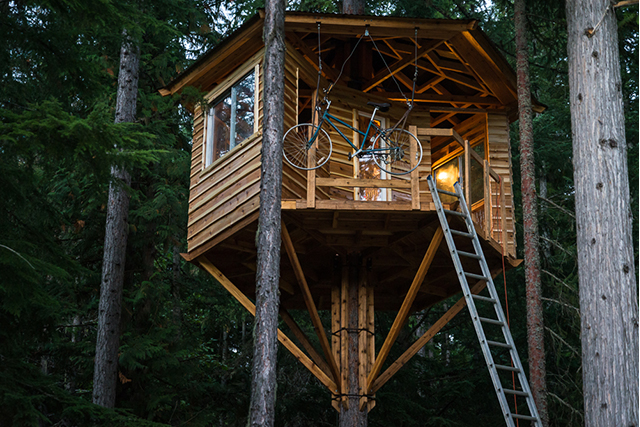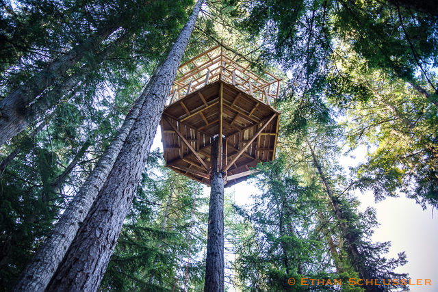 Ethan Schlussler is making steady progress on his northern Idaho treehouse — you may recall the bicycle-powered treehouse elevator post I put up about a month ago. He recently put up a video showing how he built and installed one wall on the hexagonal structure. Did I mention that he mills all his own lumber?