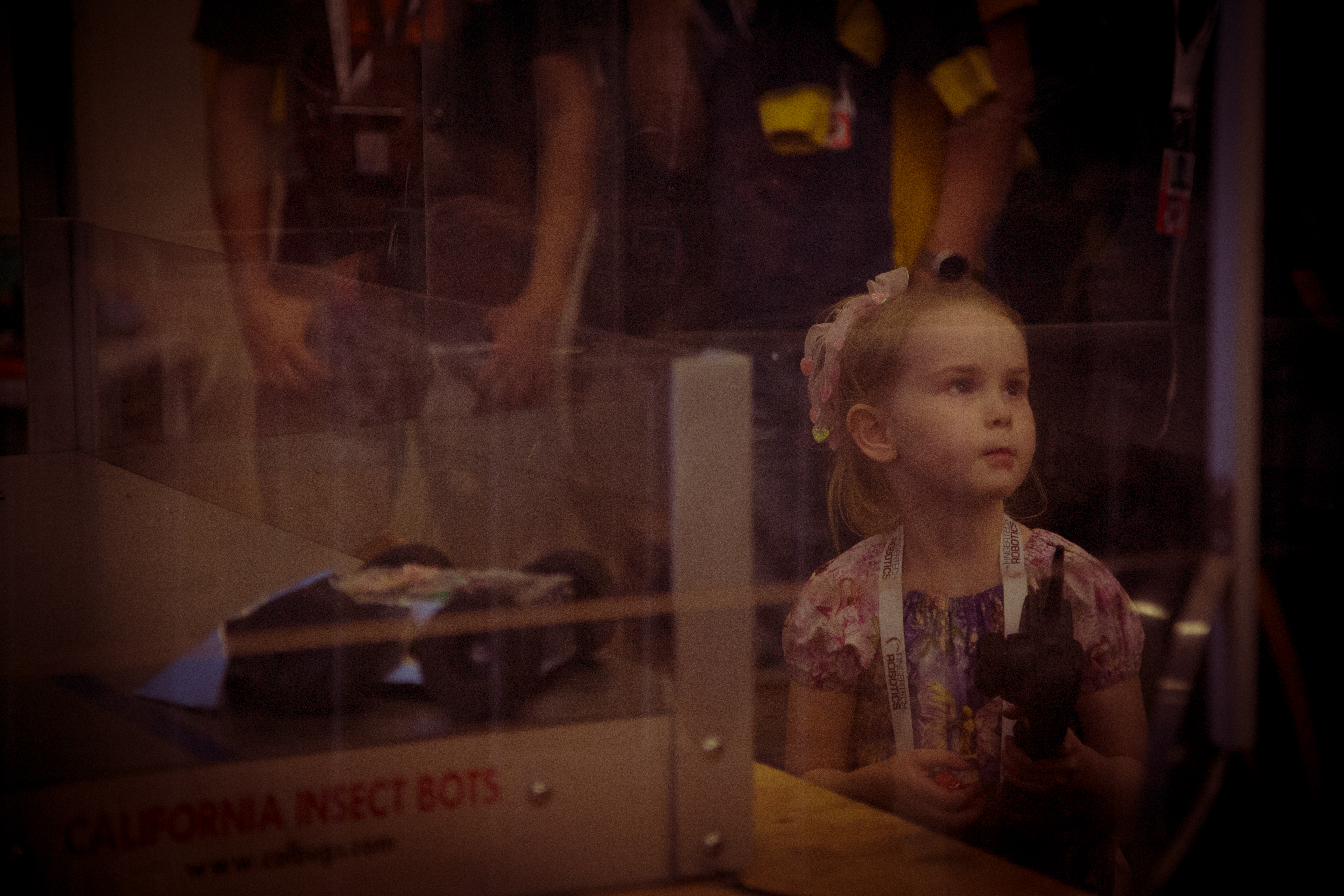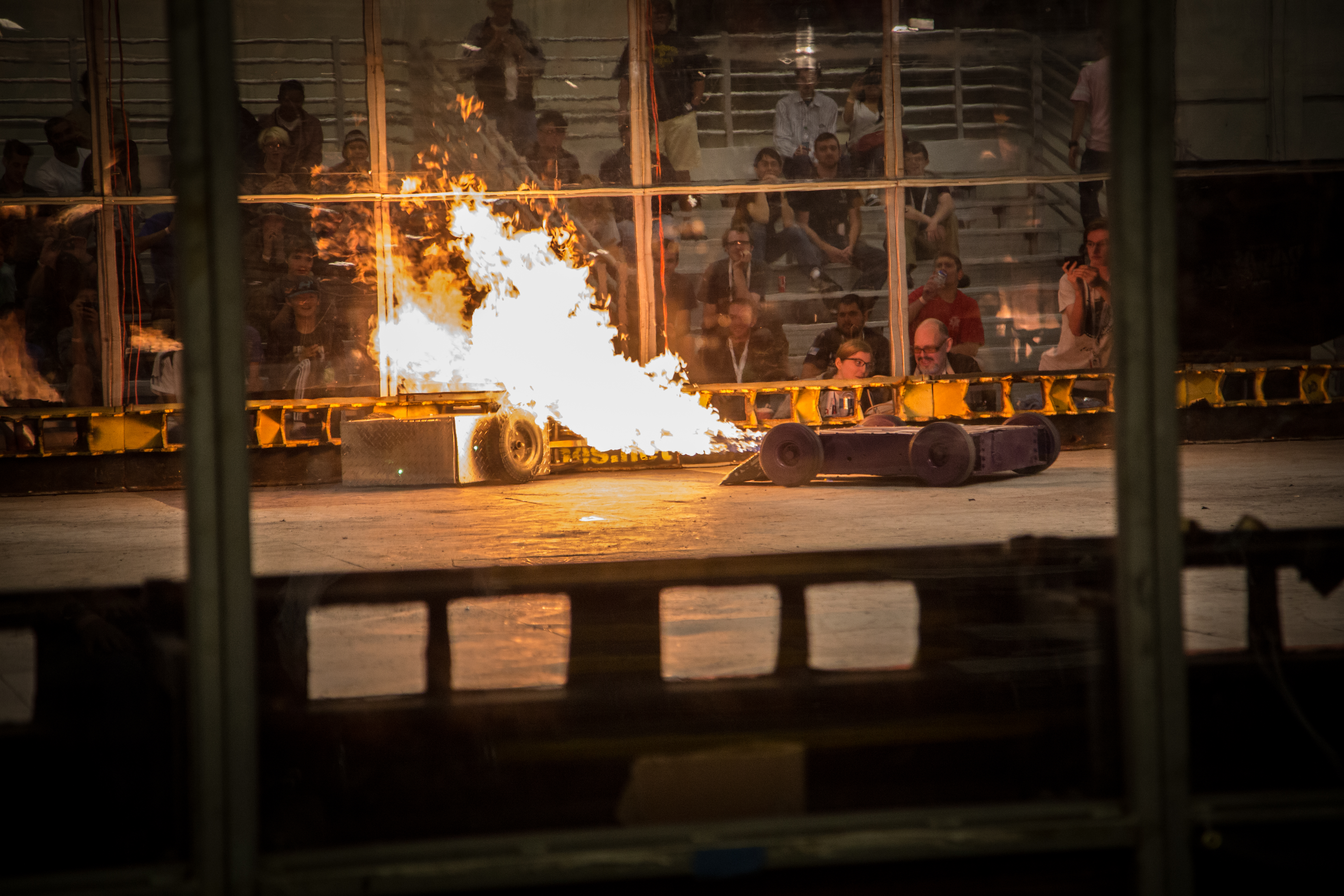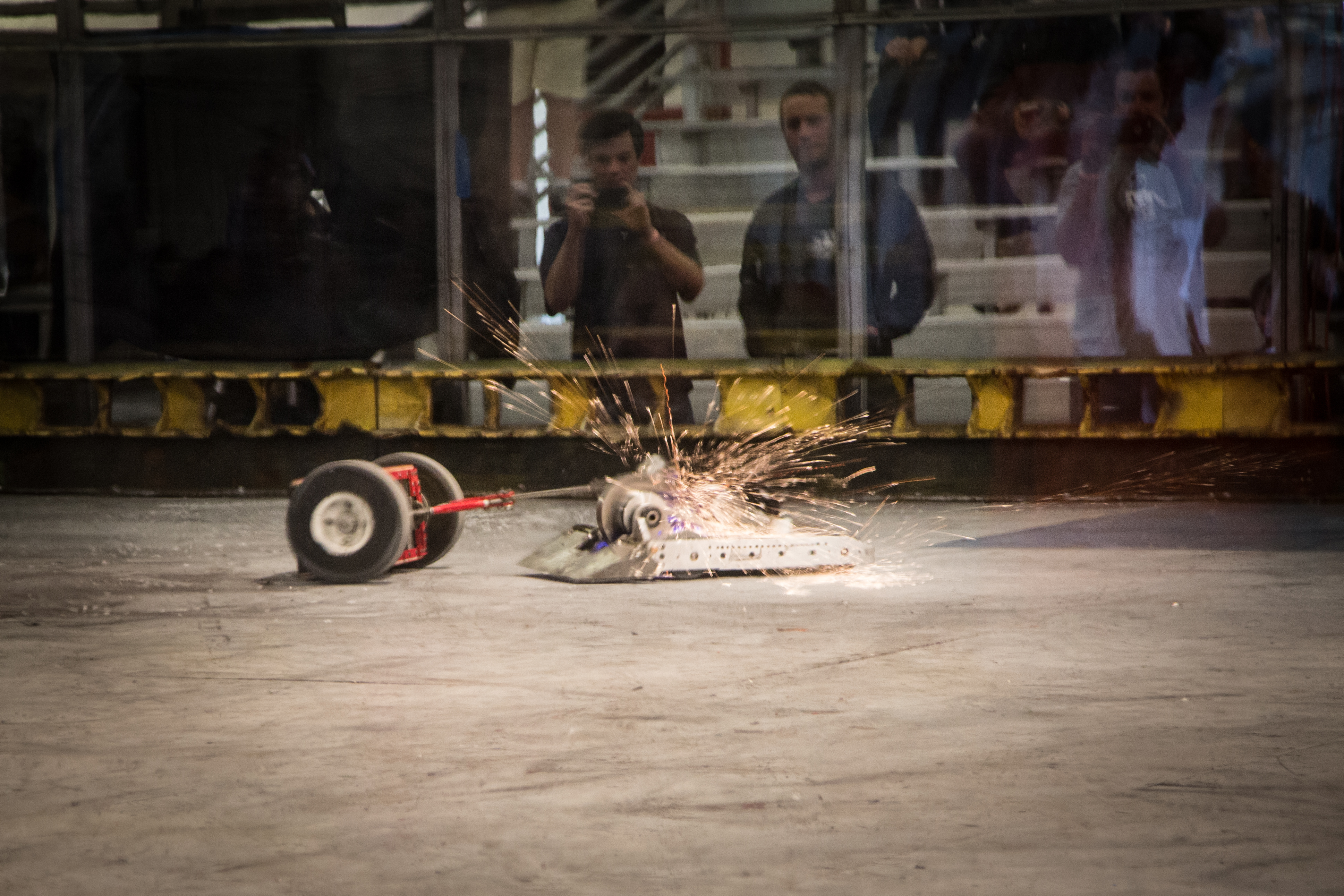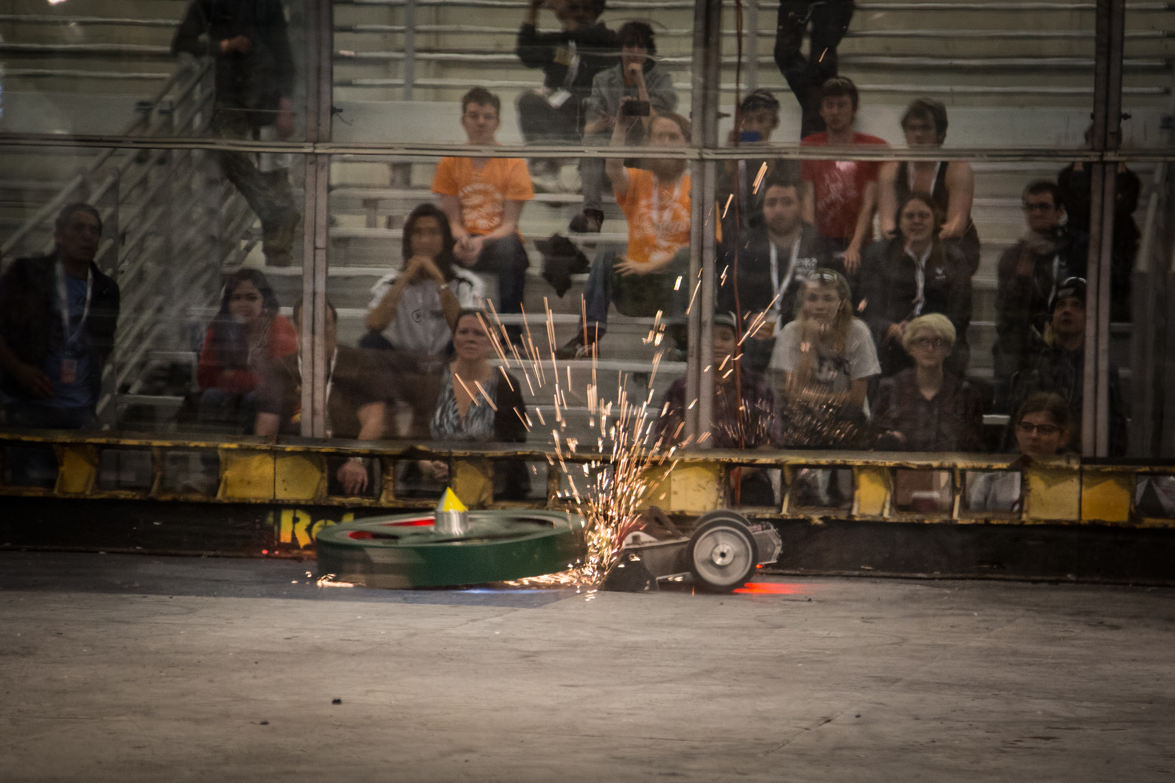 Lytle, also the founder of Bot Bash, which brings small combat robots to birthday parties and other events, has been a regular RoboGames competitor. He’s had enough success over the years that, in the final match of the weekend, his competitor had designed a robot specifically to target Lytle’s bot, The Bomb. Lytle showed that it’s about driver skill as well as bot design, sticking close to his competitor so the bot couldn’t get up to full speed, and winning in about 40 seconds.