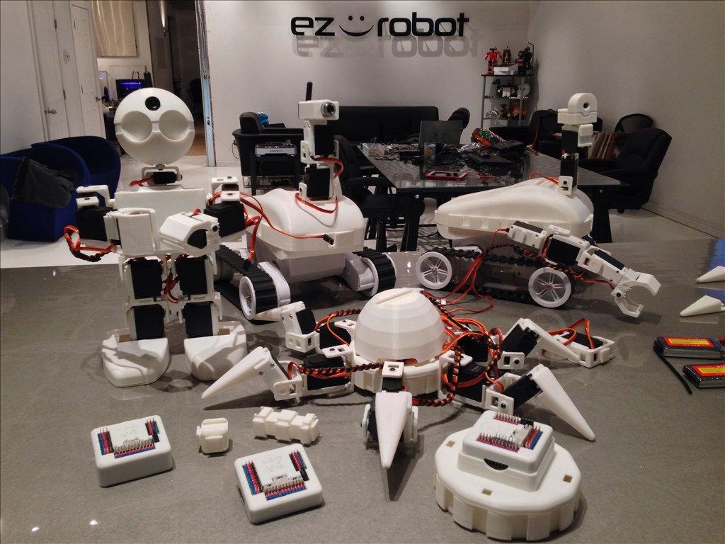 The Revolution line includes three complete robot platforms. Roli is a tracked rover and probably the easiest to start with. Six is a hexapod walker, a bit more advanced and very cool. JD is a bipedal robot, and is the most challenging. EZ-Robot has developed a range of parts (EZ-Bits) that connect using “Clip ‘n’ Play” technology. You can buy one of these platforms and customize it, or buy parts a la carte and design your own robot from scratch. Included EZ-Builder software helps you program walking gaits and custom movements. (Pre-orders available now!)