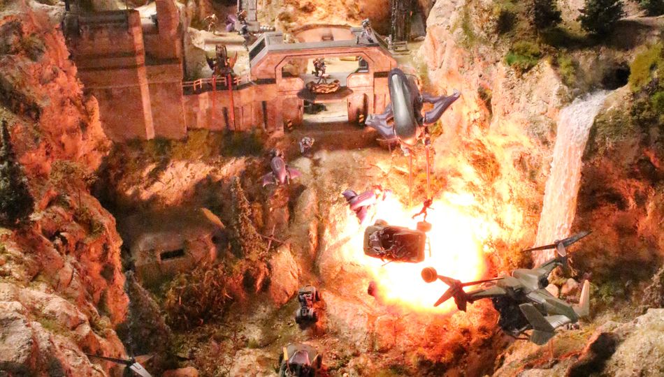 Andrew Theo, a creative director in the entertainment business by day, has spent several years of his nights bringing the digital world of Halo to life. Dubbed Halo: Reclaim, this 4’×6′ hobby diorama took Theo two years to build, using the McFarlene Toys’ roughly 15mm scale Halo Micro Ops line for the soldiers and their wargear.