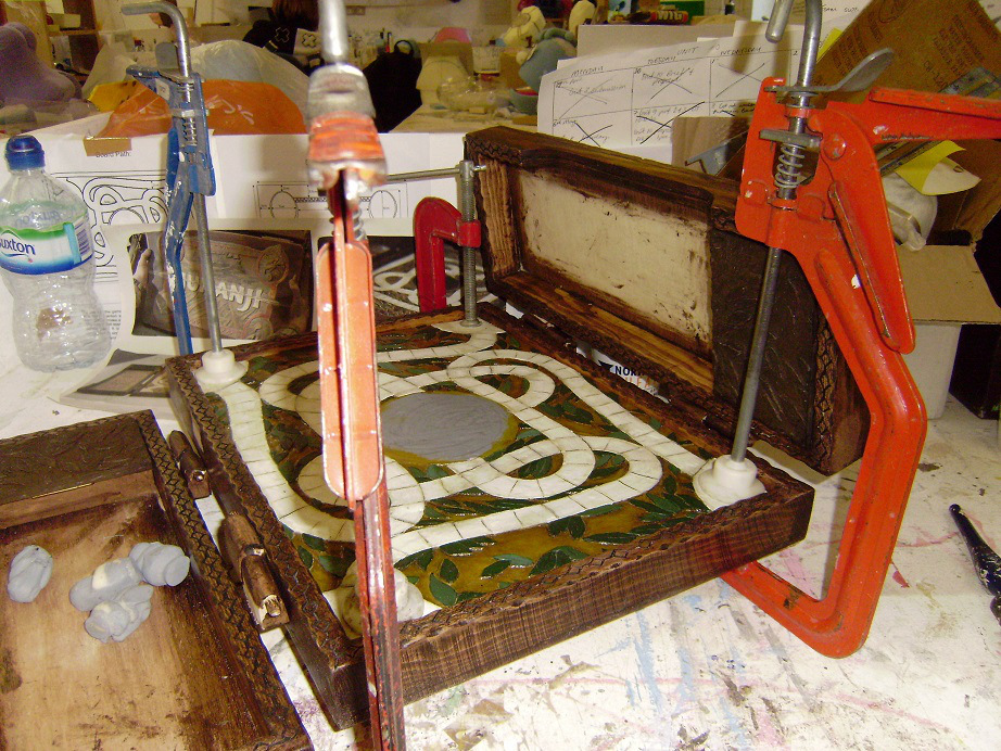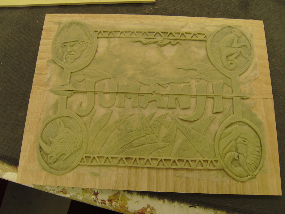 Cue the tribal drumming for this incredible replica of the Jumanji game board used in the 1995 movie starring Robin Williams. Prop maker Gemma Wright made the game board by hand, including every possible detail. The process included carving wooden details, as well as wooden hinges, casting resin in silicone moulds made from sculpted clay, and painting the board and dice.