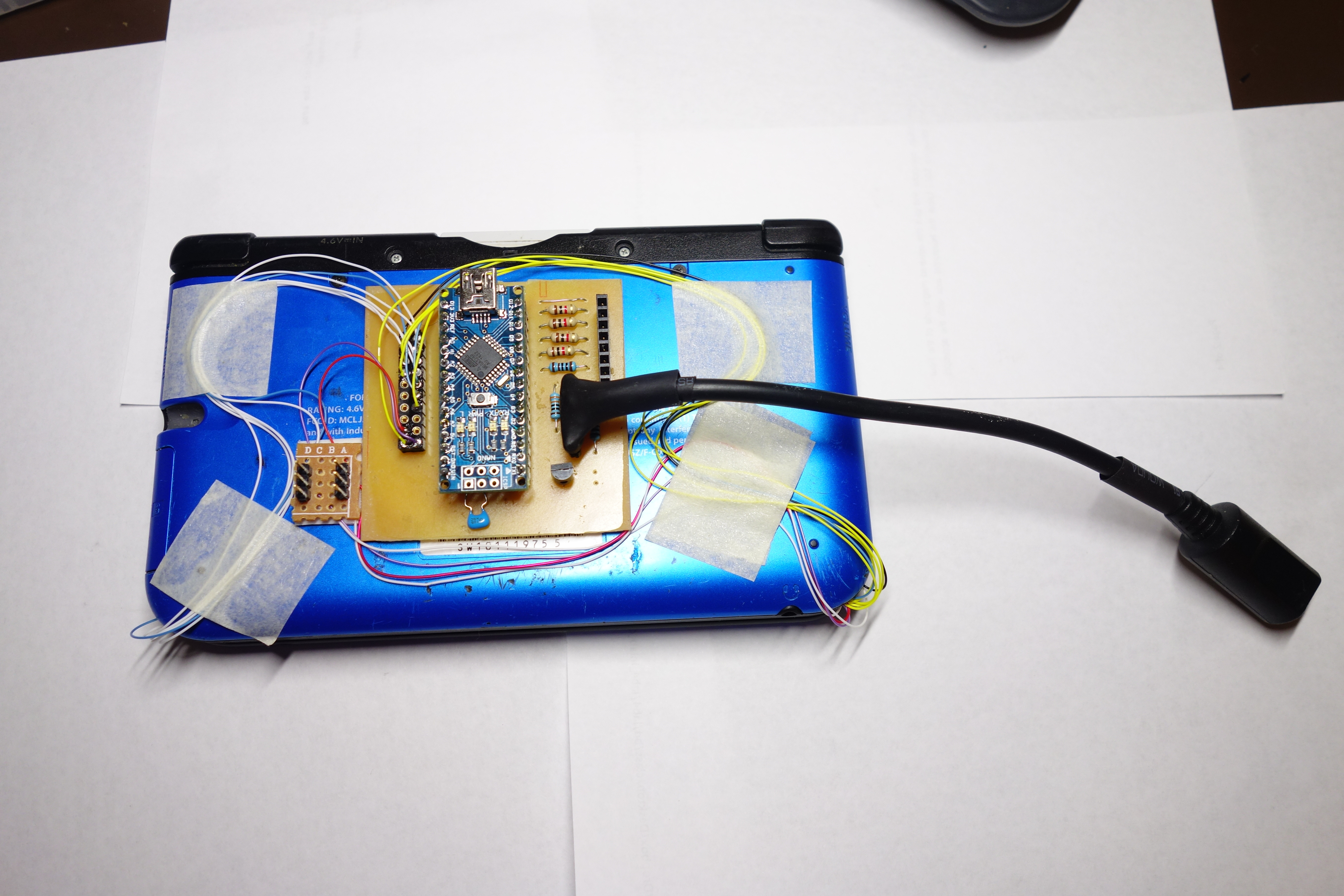 Via his open-source project, Maker “dekuNukem” modded his 3DS to play Super Smash Bros. using a GameCube controller which is costumizable with adjustable button mapping with an LCD screen. In his case, he used an old phone display. Using an Arduino Nano (ATmega328) to read input to the GameCube controller, he was able to replicate the actions to the 3DS at around 1200 times a second; a maximum delay of around 840 microseconds. And it’s simple to use: just plug in the microcontroller, GameCube cable, and a USB cable for power and when you’re done just remove the microcontroller and cables to make it portable once more.