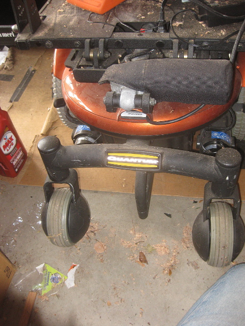 Next up was the mobility cart’s size. A lot of the muffins and cupcakes use an electric wheelchair motor to power a custom-built trike inside the tin. Once the mobility cart was stripped down to its frame, motor and wheels, I realized it was really going to be fast and agile AS IS. That meant the whole cupcake would need to be built a little different than planned.