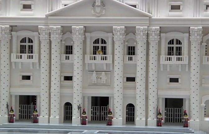 Father Simon premiered his Lego Vatican at the 2015 BrickFair convention in Virginia. This video interview with Simon, by Matthew Kay and Joshua Hanlon of BrickPodcast.com, offers a good overview of the project, some details of the construction, and how the massive model breaks down for transport.