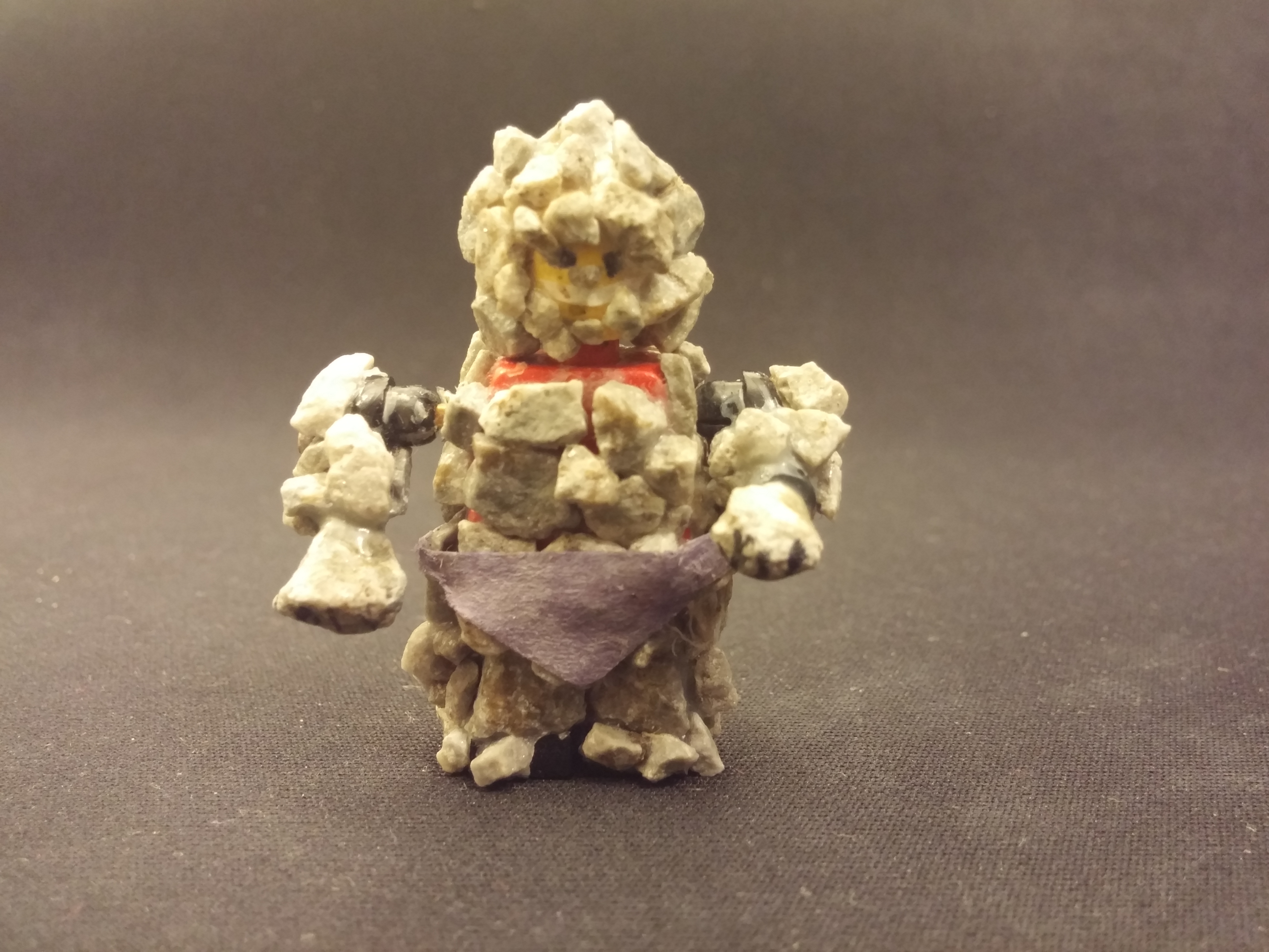 Finally, Fantastic Four’s the Thing. Oh boy … what a great idea: use real rocks from my driveway. I thought I could fit them all together to make it look authentic, but shape fitting was elusive. His face was hidden, and the body was too big for the arms, so I extended it. In the end I abandoned the idea as well as making the Fantastic Four all together. X-Men were way cooler.