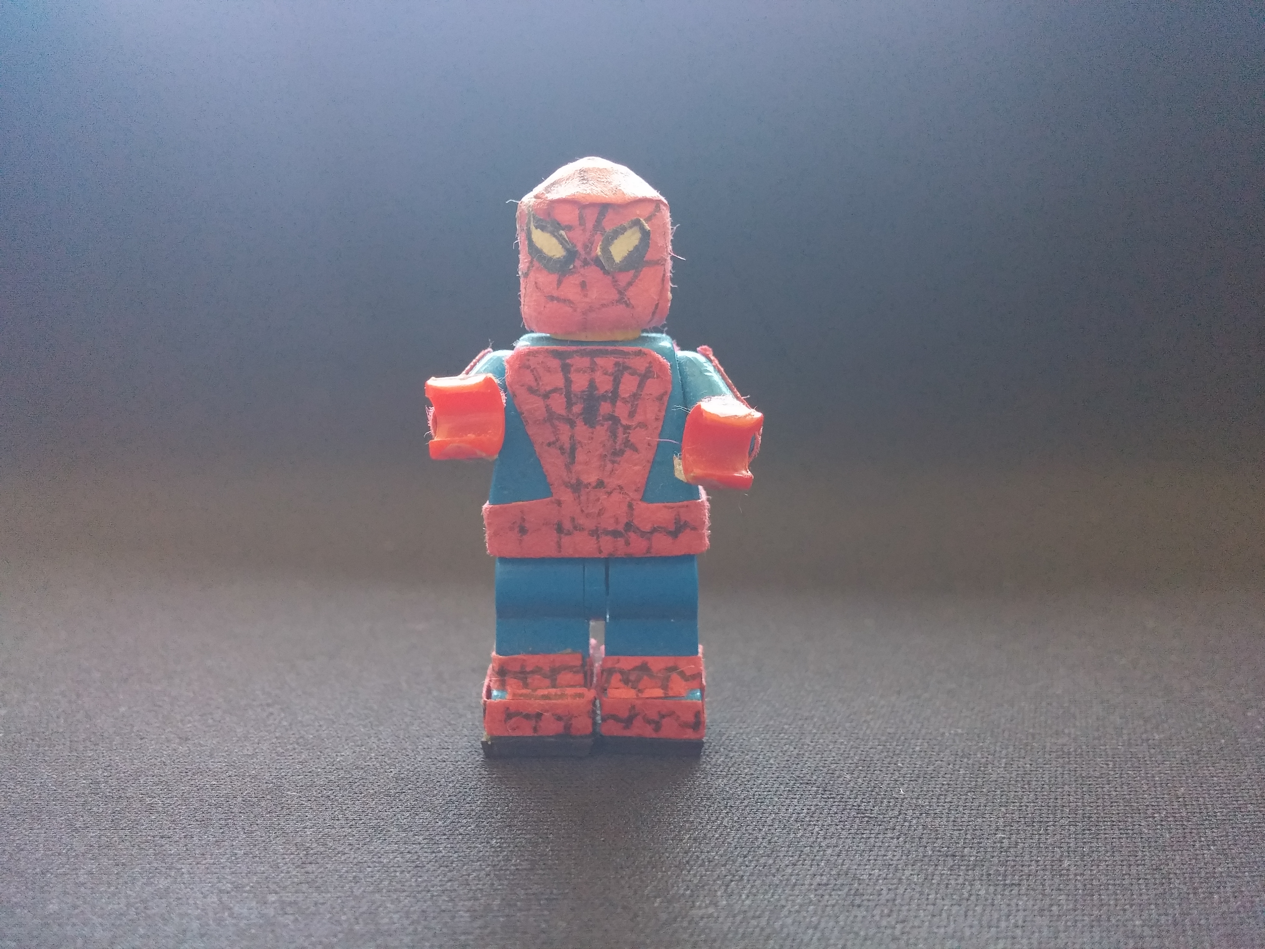 I was obsessed with Green Goblin for a while. I think it was the gadgetry of the character. Made his own bombs, glider, other weapons. This was the first character I made with a wide stance. Mainly so he could stand on a glider and look cool. I made a bag for the character so he could hold pumpkin-bombs and other throwing weapons.