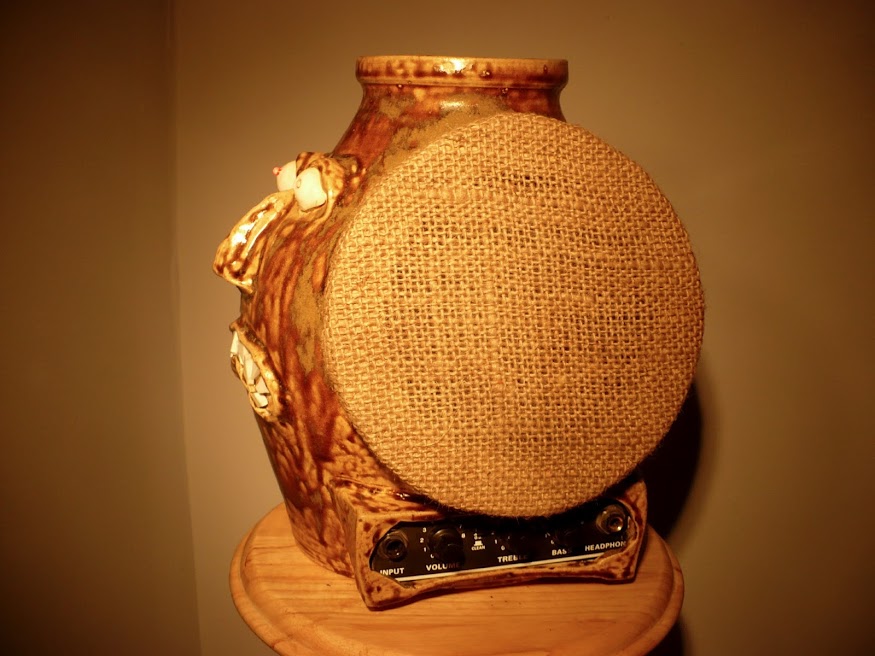 Each Piece varies widely in the time it took to make. The prototype took many hours. I added lots of hardware to attach the speaker and guts of the amp. The official first one (face jug) took many hours as well since there was a lot of aesthetic qualities that I added. The 2nd one with the wood took much longer since I crafted the wood that holds it up. The latest one only took 10 hours to make since I wanted a simple and clean design.