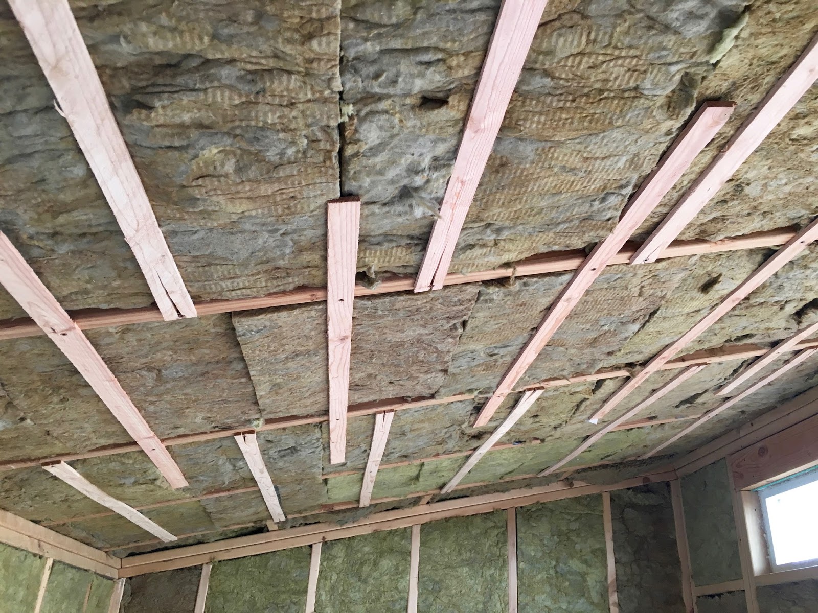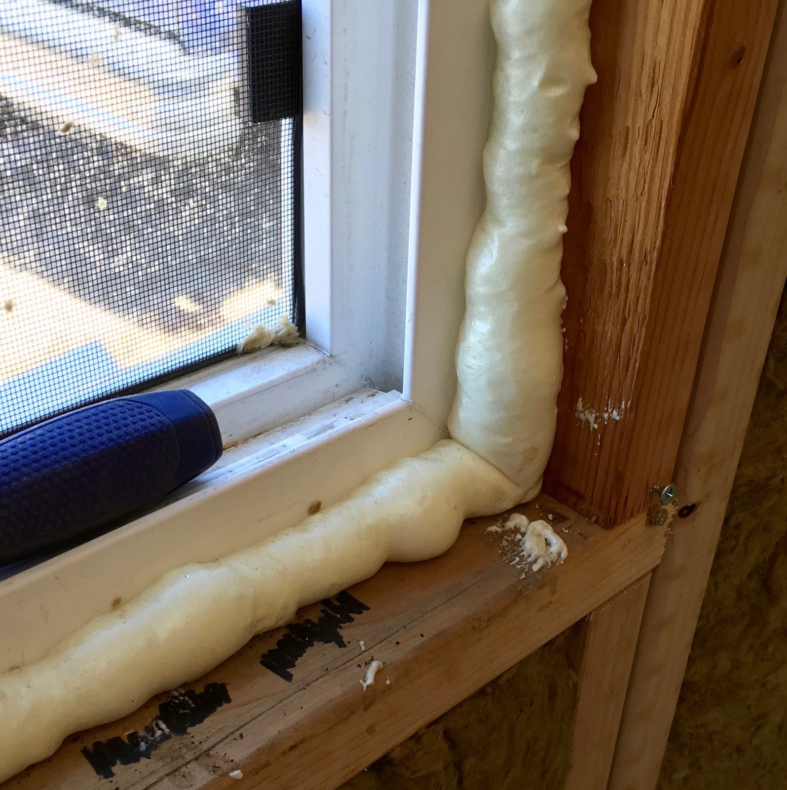 To start the renovation off, he filled the gaps around the windows and doors in with Great Stuff foam, cutting the excess off with a knife. Insulation was then added in the form of rock wool. He used this instead of fiberglass because, among other factors, it’s more soundproof than fiberglass and easier to install (I used something similar in this noise paneling build). Though it is more expensive than fiberglass, this wasn’t a huge consideration in his small space.