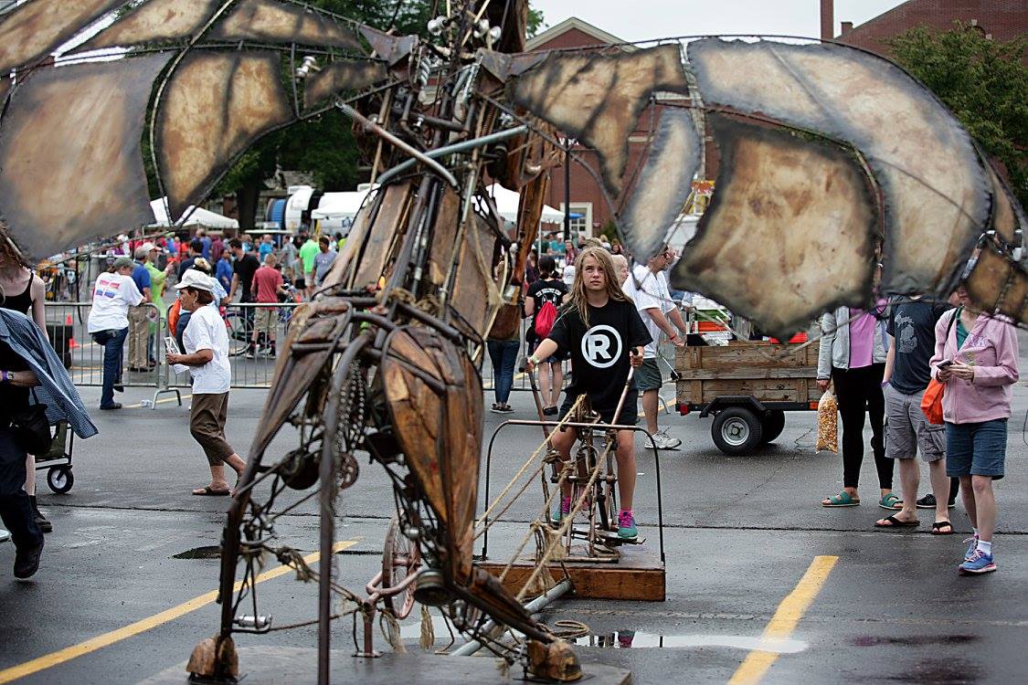 Imagine an aluminum bison trundling down Mack Ave or a scaled 19-foot pangolin waddling into a middle school parking lot. These pedal-powered beasts deliver school-aged passengers to 826 Michigan learning programs tutoring with courage, humor, and joy. The mechanical animals are a joint project between artist Juan Martinez and author Dave Eggers for 826 Michigan.