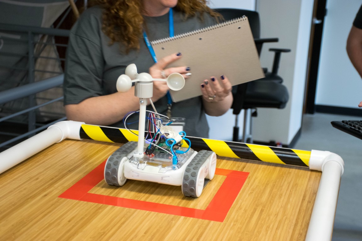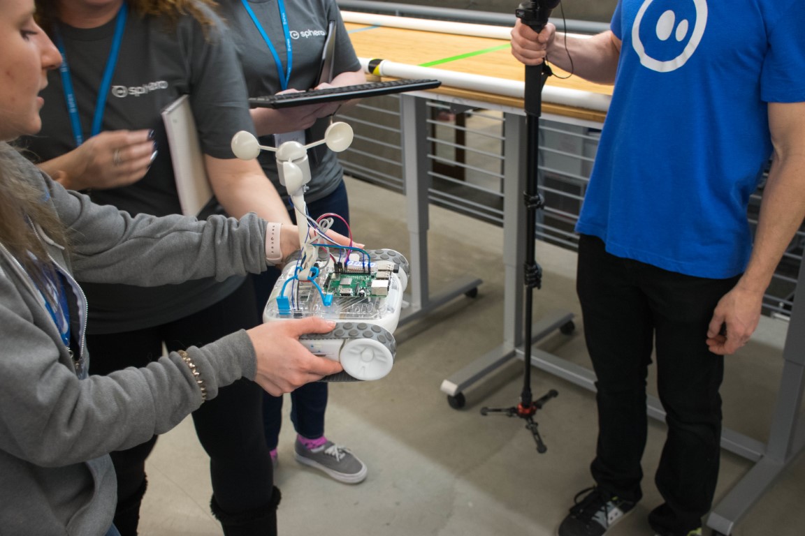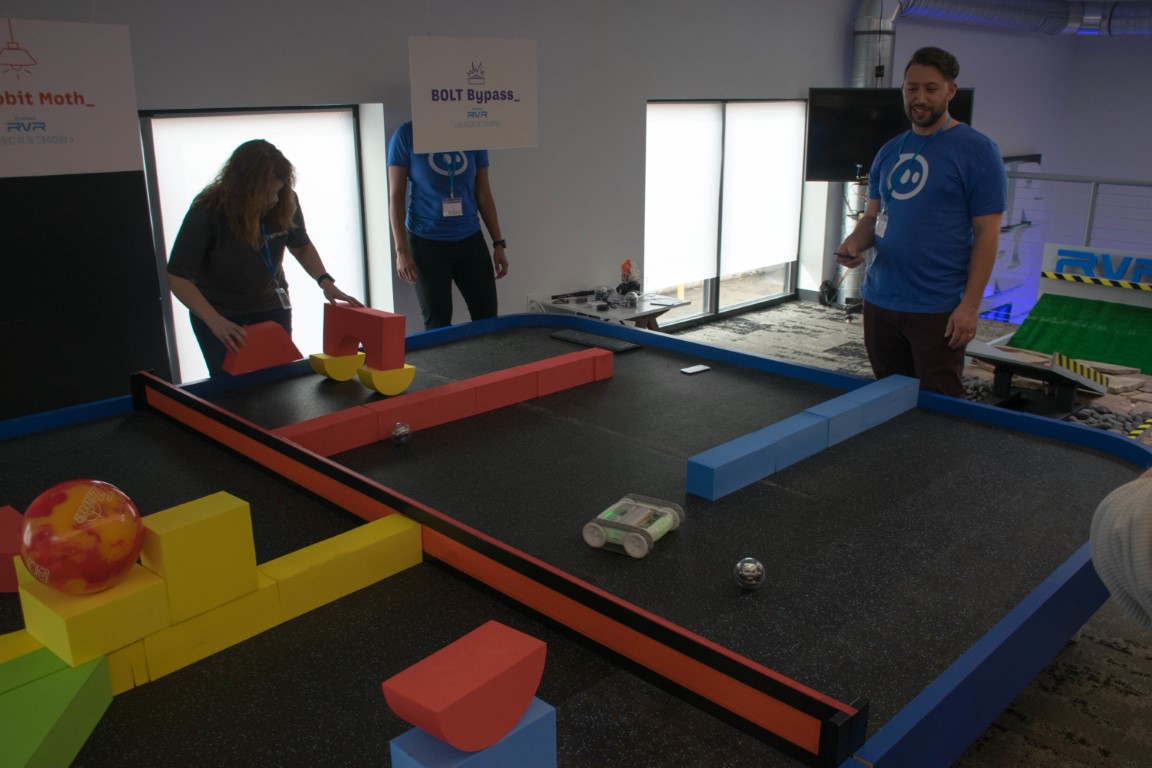 10 early supporters of the RVR Kickstarter campaign got hands-on with Sphero engineers and the upcoming Sphero RVR programmable drivable robot. The hackers were paired with Sphero engineers and tasked with programming the RVR to complete various challenges and obstacles. One such challenge had teams install an anemometer and Raspberry Pi to the RVR and program the vehicle to convert wind speed to drive speed.