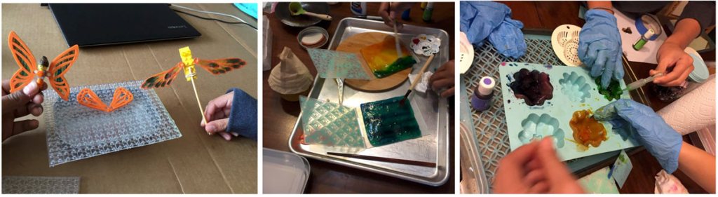 These planters are grown in vacuum form molds the girls made from recycled milk jugs using vacuum forming based on 3D printed designs they created in Tinkercad. If time allows, they may conduct a kombucha leather activity at the AYA Makerspace in East San Jose. All these workshops will help them refine their activities and inform the design and look and feel of their kit system.