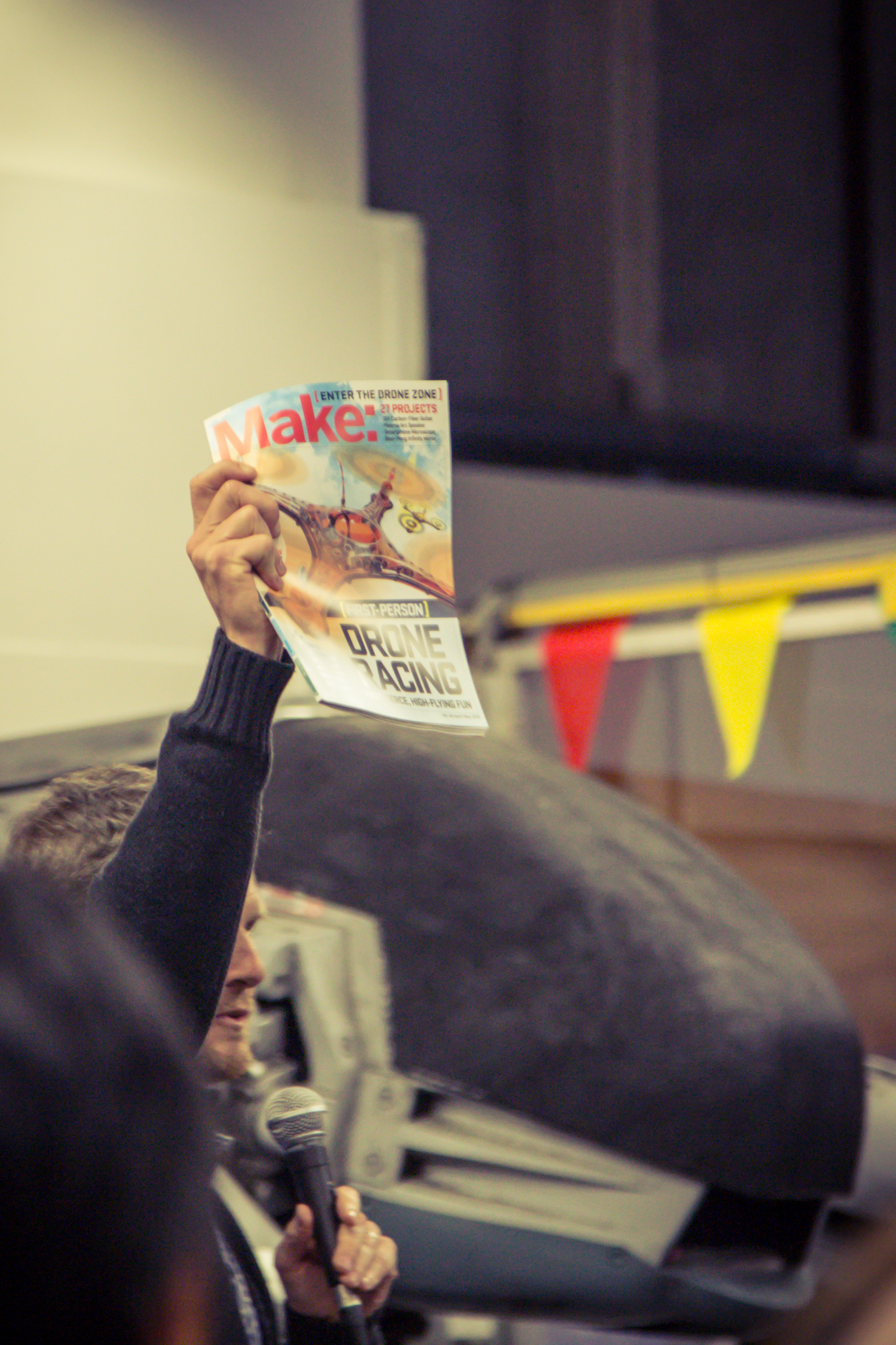 Congratulations to Blake Mitchell, who triumphed in a nail-biting round of drone trivia and earned himself an Iris+ Multicopter from the Maker Shed, and also to the lucky winner of our raffle, who won her very own Sprout courtesy of HP! Check out the gallery to see how much fun we had, and be sure to join our Make: Magazine meetup group to be notified of our upcoming events.