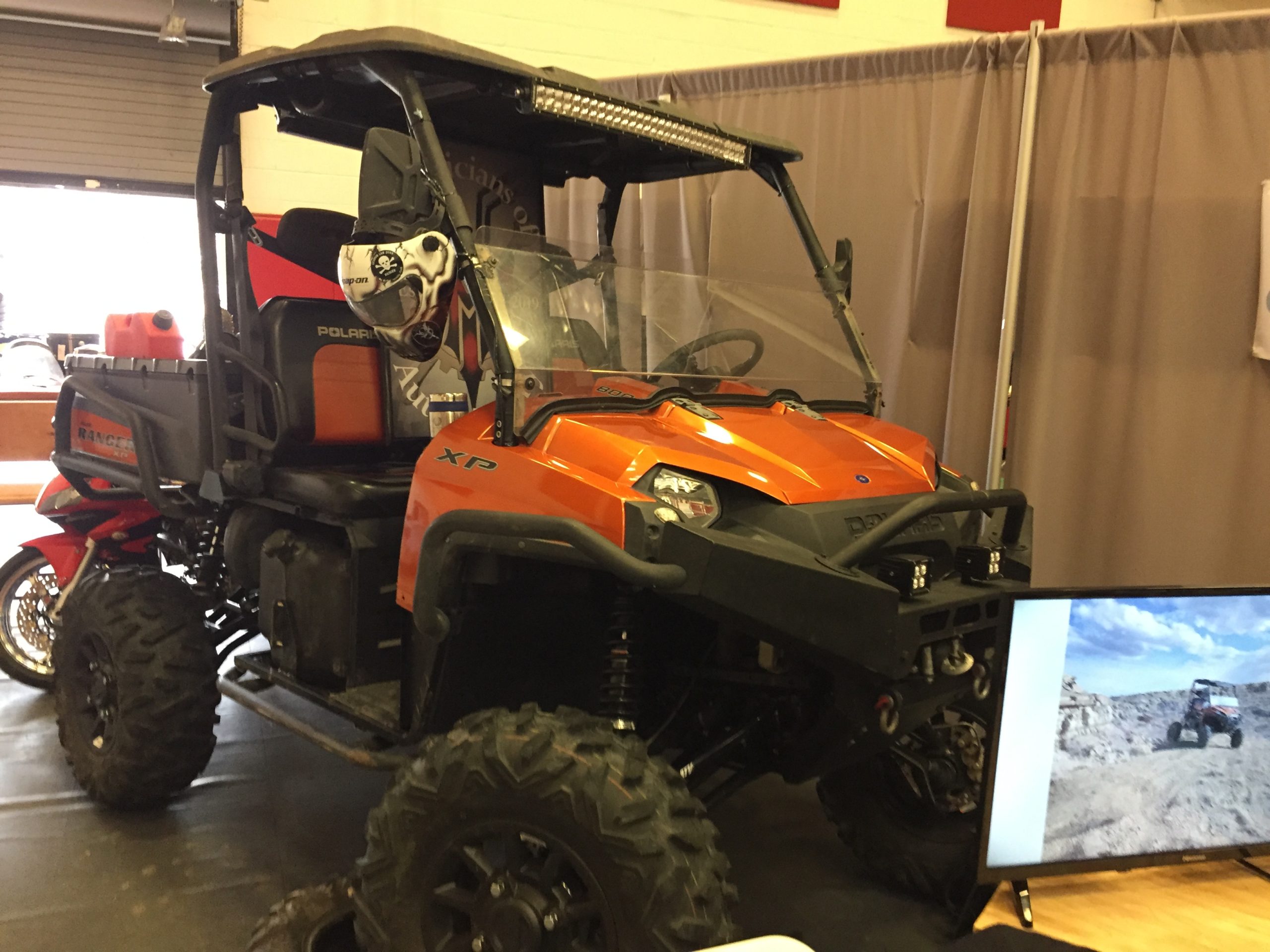 AUTOMOTIVE TECH: Instructor Shawn Piechowski showed off the Polaris UTV his students are modding with a DynoJet quick-shift sensor, new clutches, Portal gear reductions for higher torque, and 24″ lifts for extreme high clearance over rocks and gullies. “I’ve worked on a lot of these for hunters, but this one is our monster sheep-herding rig,” he said. “There’s a real need for this on the Navajo Nation.”