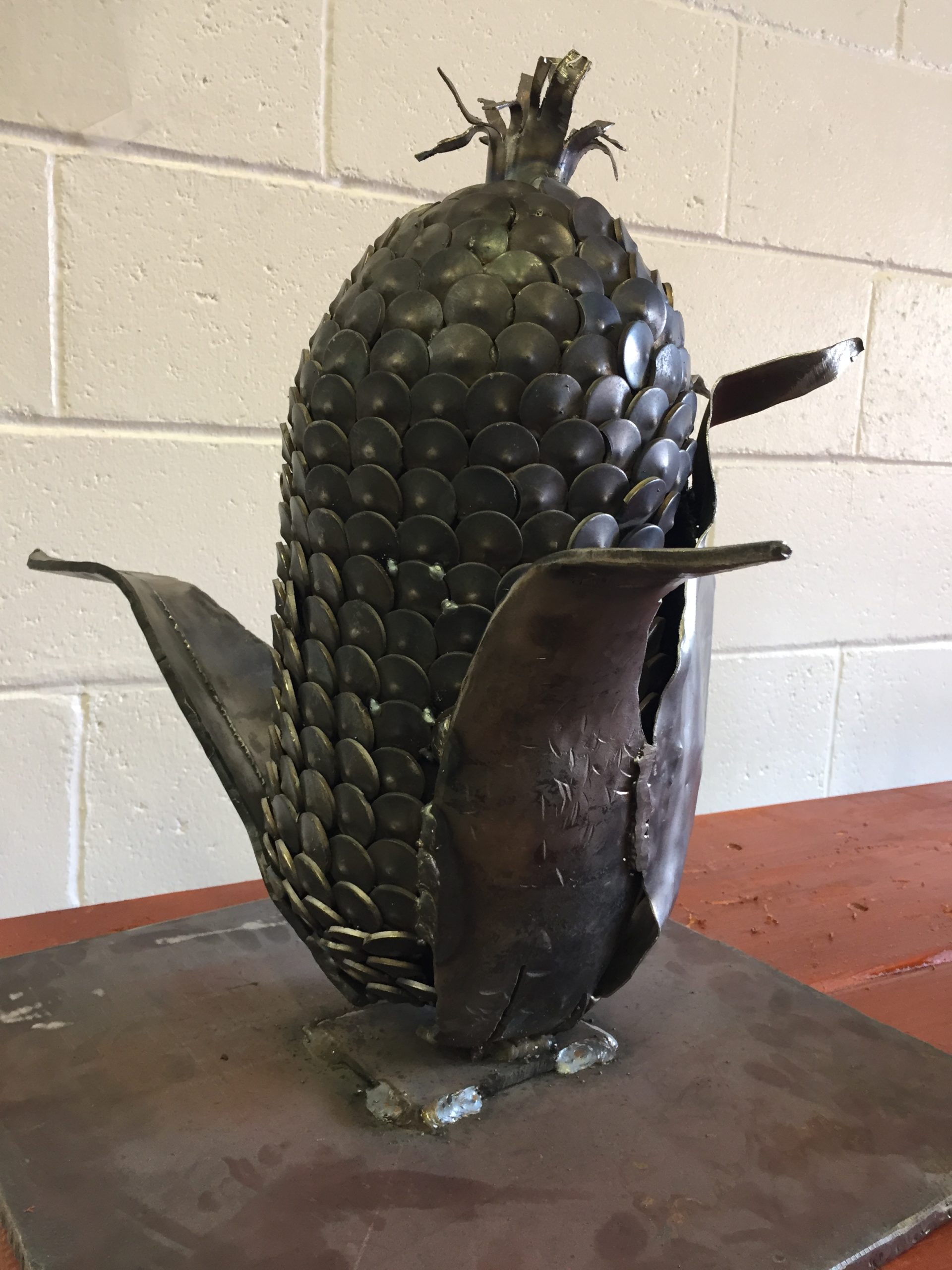 WELDING: Instructor Chris Storer led a hands-on Learn to Weld activity and a welding contest. He’s also a silversmith, and he was proud to show off this awesome steel sculpture of an ear of corn created by students Gabby Bryant and Leomie Foster: “The girls are doing great work!”