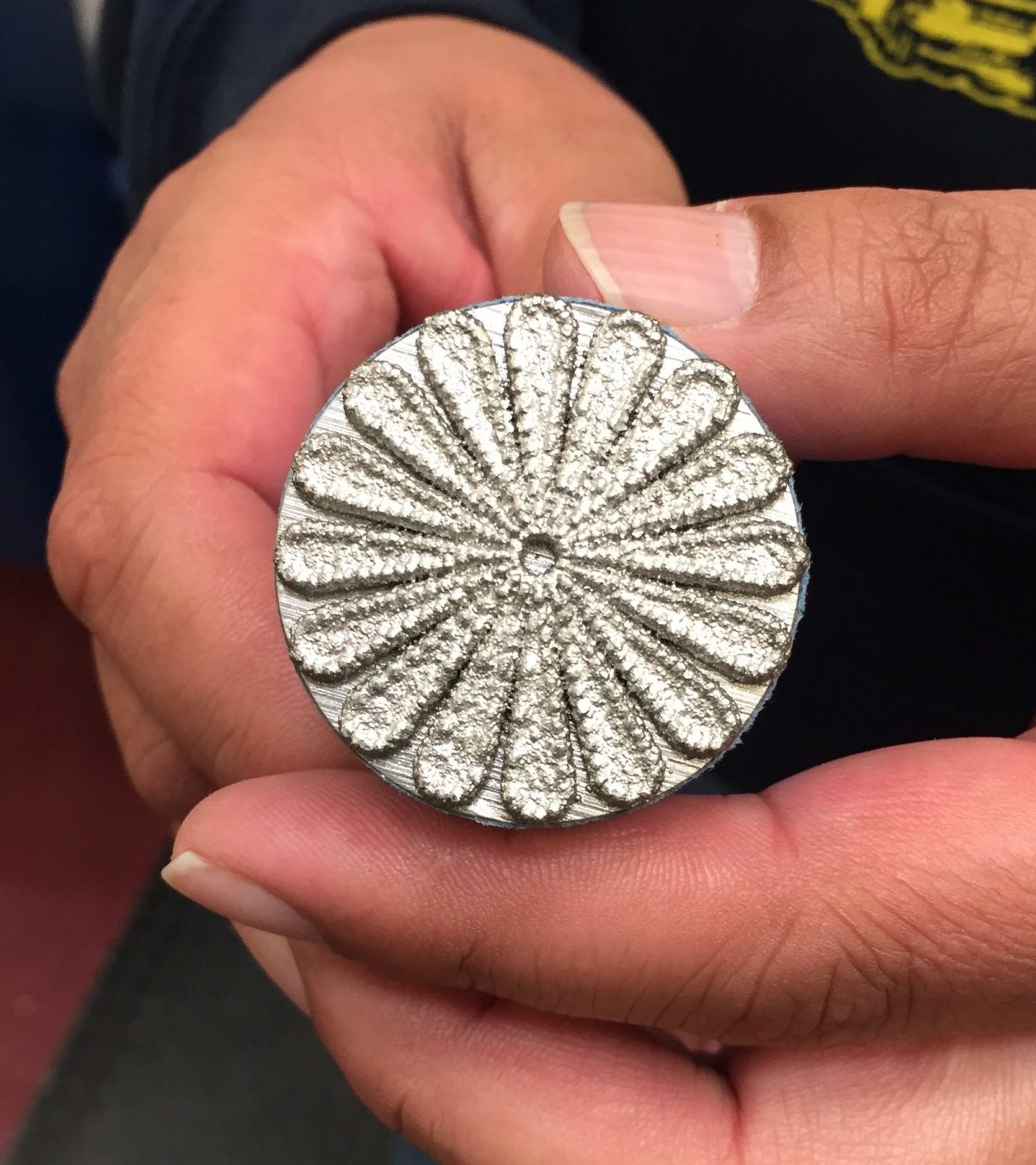 METAL 3D PRINTING: NTU Fab Lab’s new Optomec metal 3D printer uses high-powered lasers to weld metal powders completely, no binders or post-curing, just solid metal parts right out of the printer. Sick! Additive manufacturing (AM) technician Gregory Dodge showed me a test print in solid stainless steel: a traditional Navajo stamp for silversmithing.