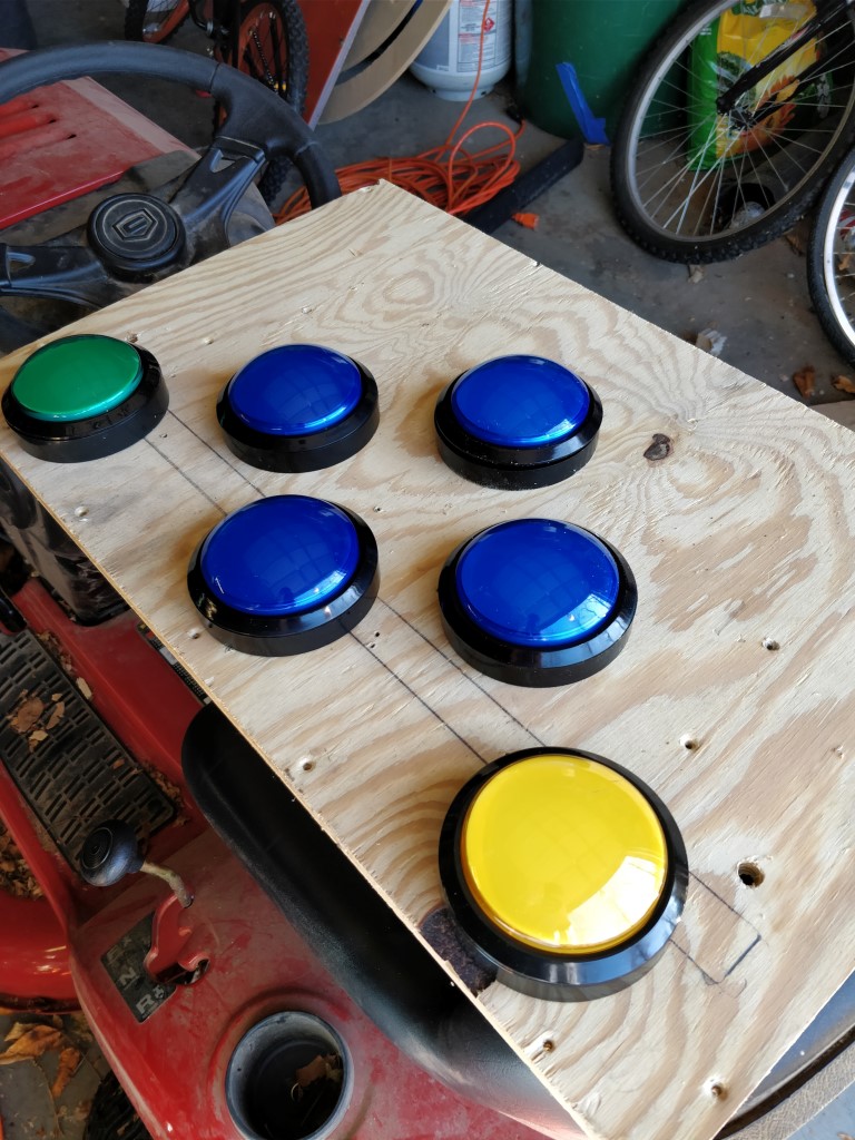 I shared the different sizes of buttons available, and she picked out these 100mm big buttons from Adafruit. They’re big and tough, so they can take some abuse. I love them.