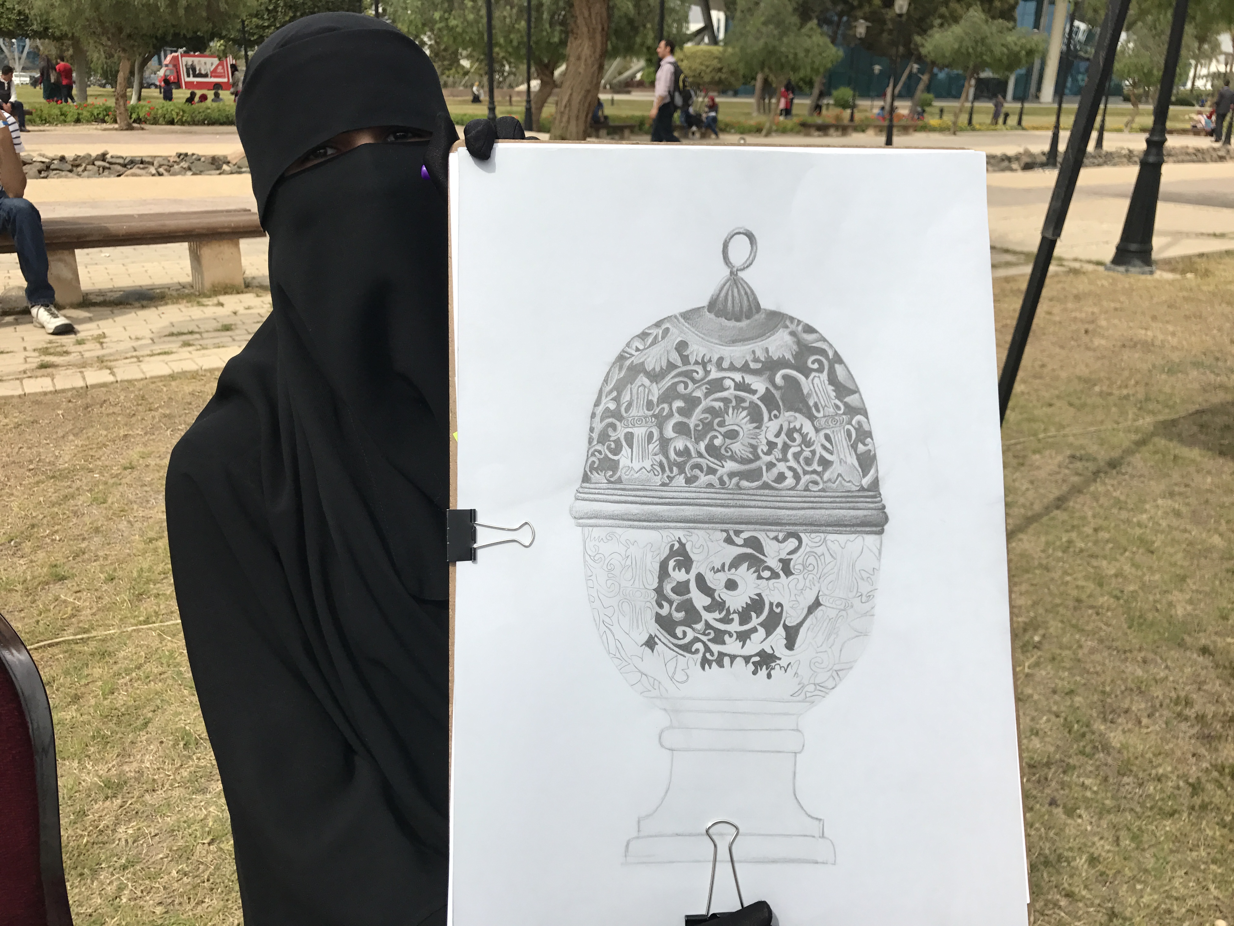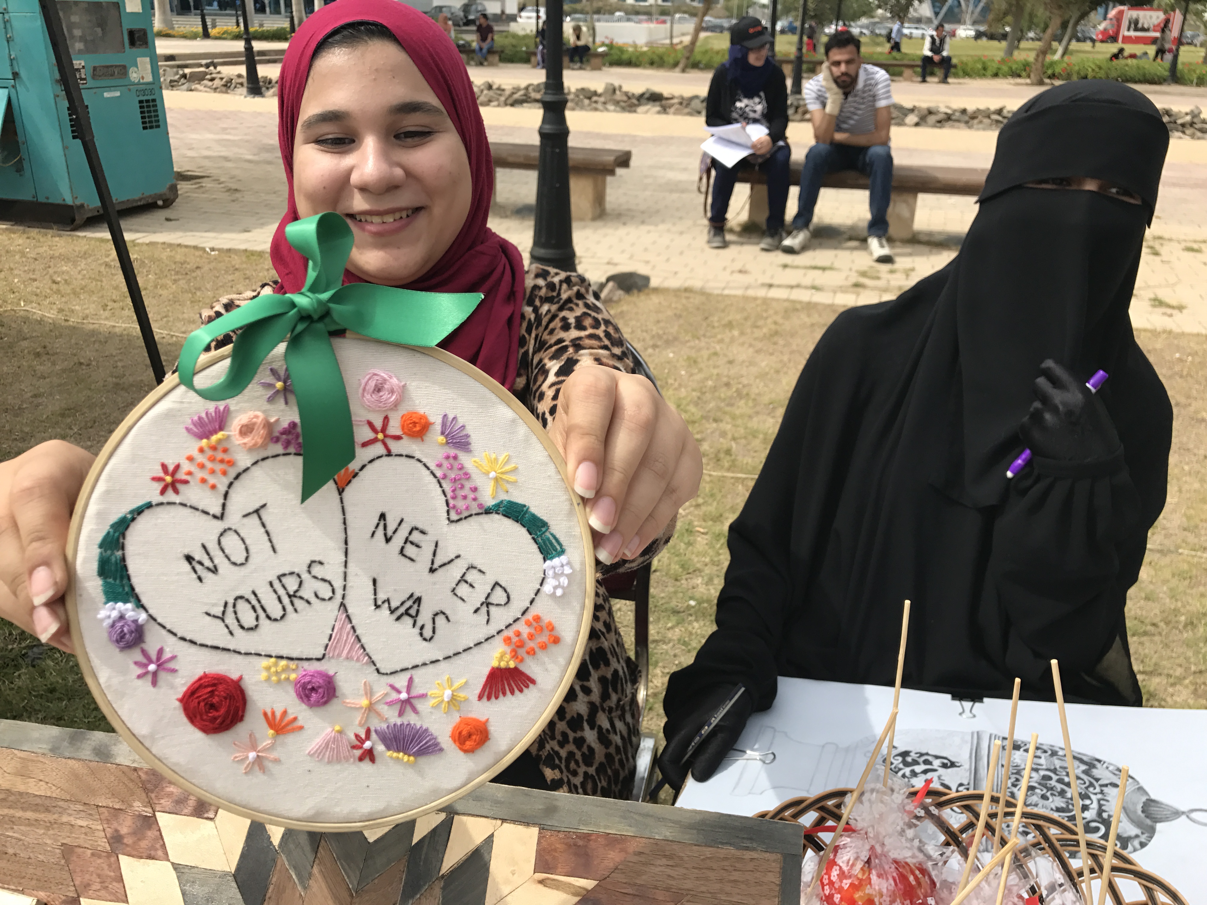 In terms of range, makers ran the gamut: old and young and in-between; classic through cutting-edge maker technologies; male and female. Almost all of them spoke very good English. Young women at the Faire were overall less conservatively dressed than elsewhere I saw in Egypt, but most young women still wore a headscarf. The young maker/artist at the top of this post in full black veil — called a niqāb in Egypt — was the only #LadyMaker I saw in niqāb. She spoke great English and responded cheerfully when I asked if I could take her picture. (I was so nervous that I forgot to take her and her booth-mate’s names!)