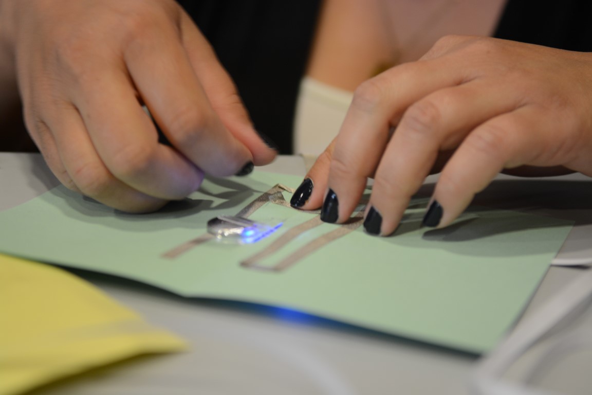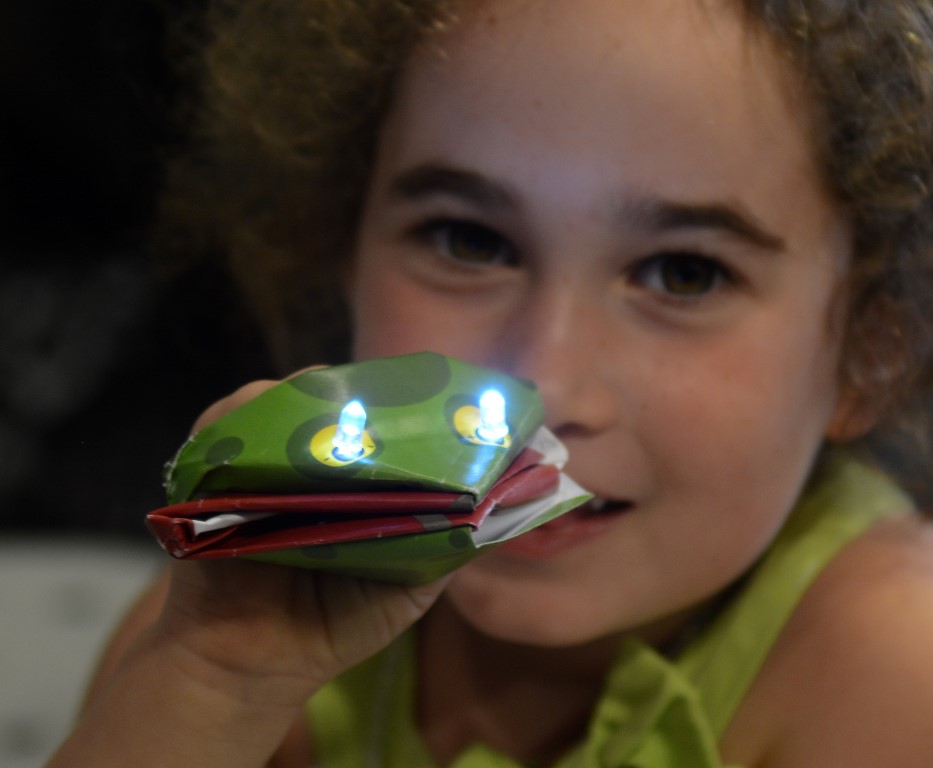 - Interactive origami (Yael Avni) – paper creations with a “start switch” that turns on and off as you move. Integrating paper and electricity.