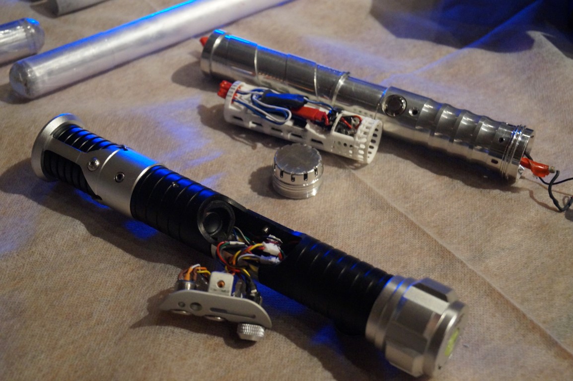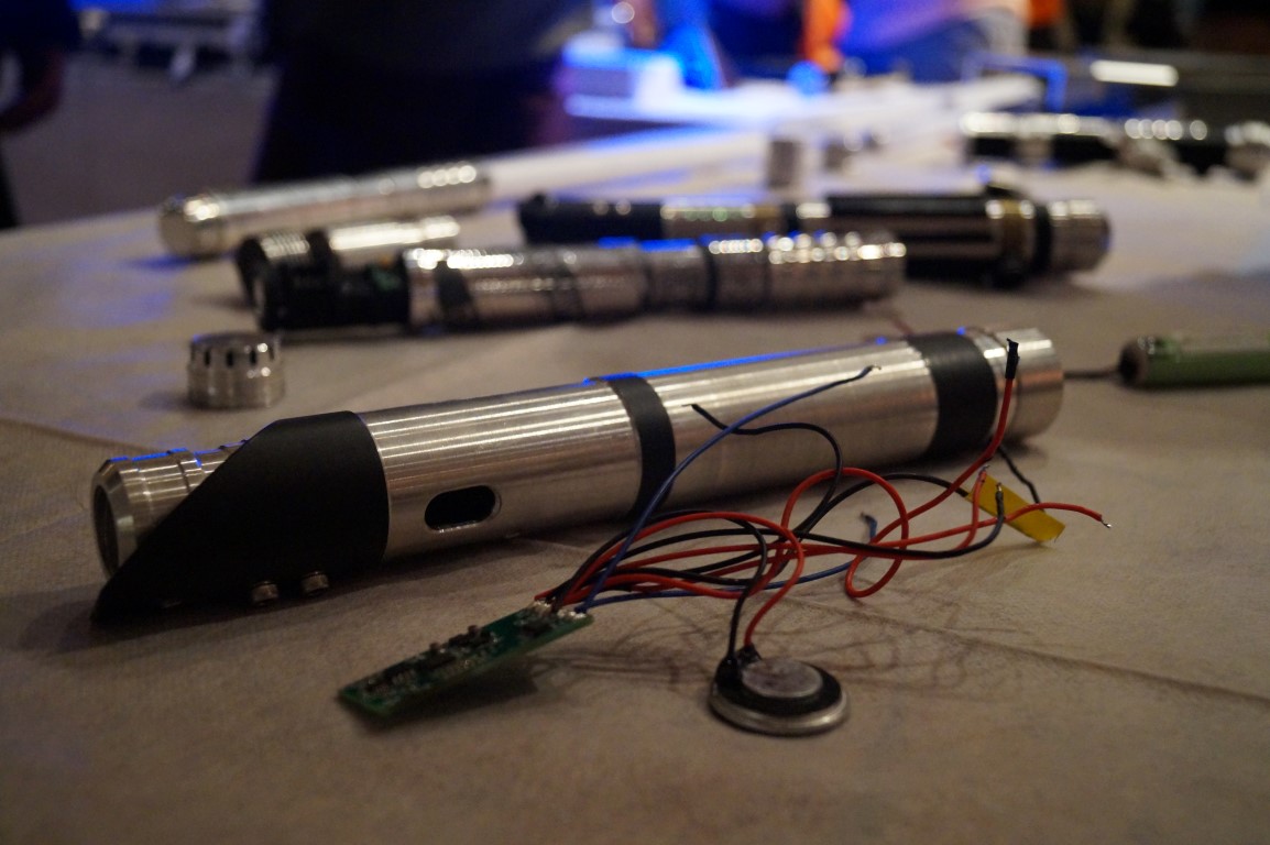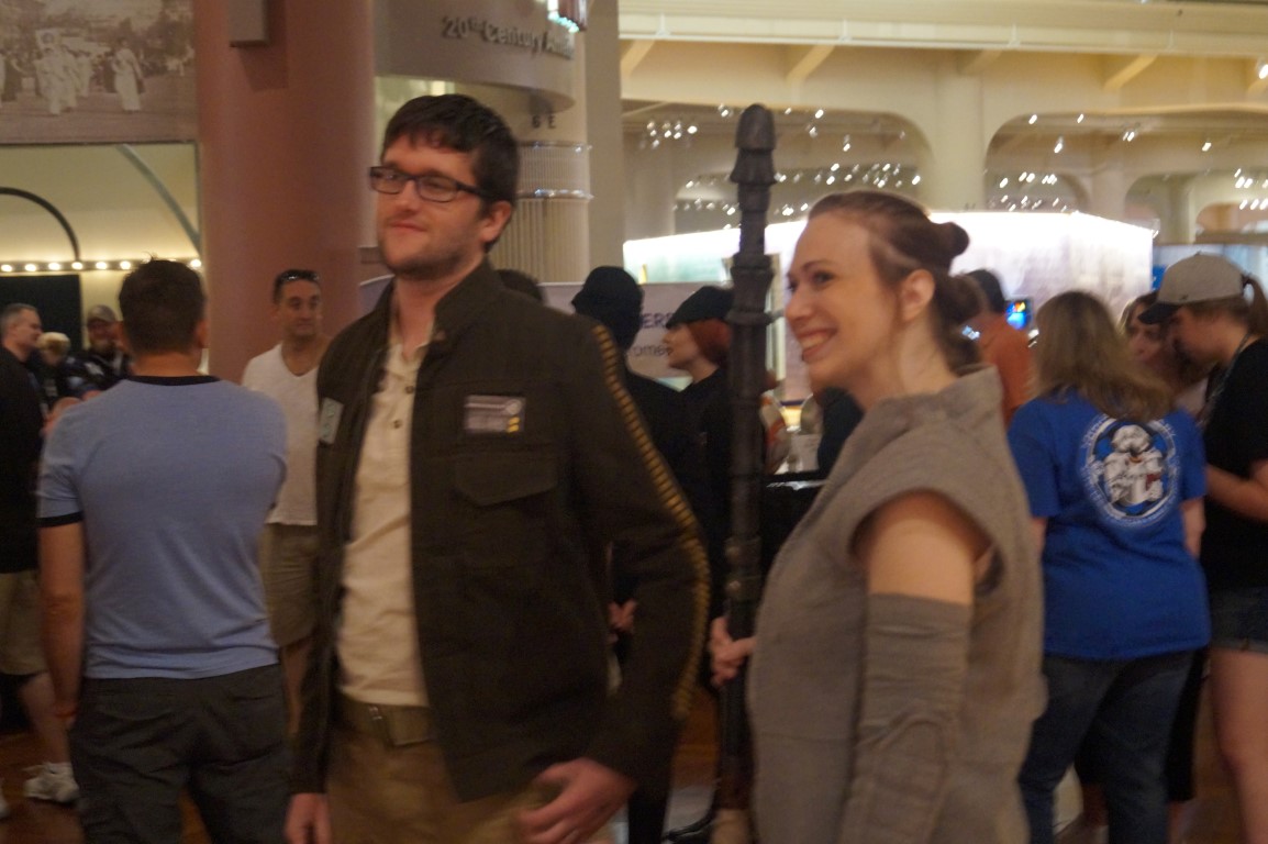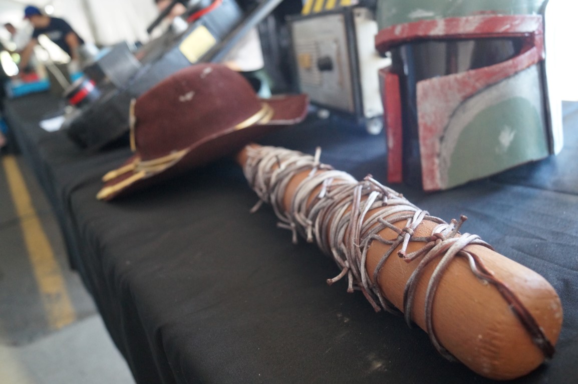 I know this picture is blurry, but just look at the expression on this young woman’s face as she walks up to a table covered in light sabers. These kits and custom props are from Terra Prime Light Armory.